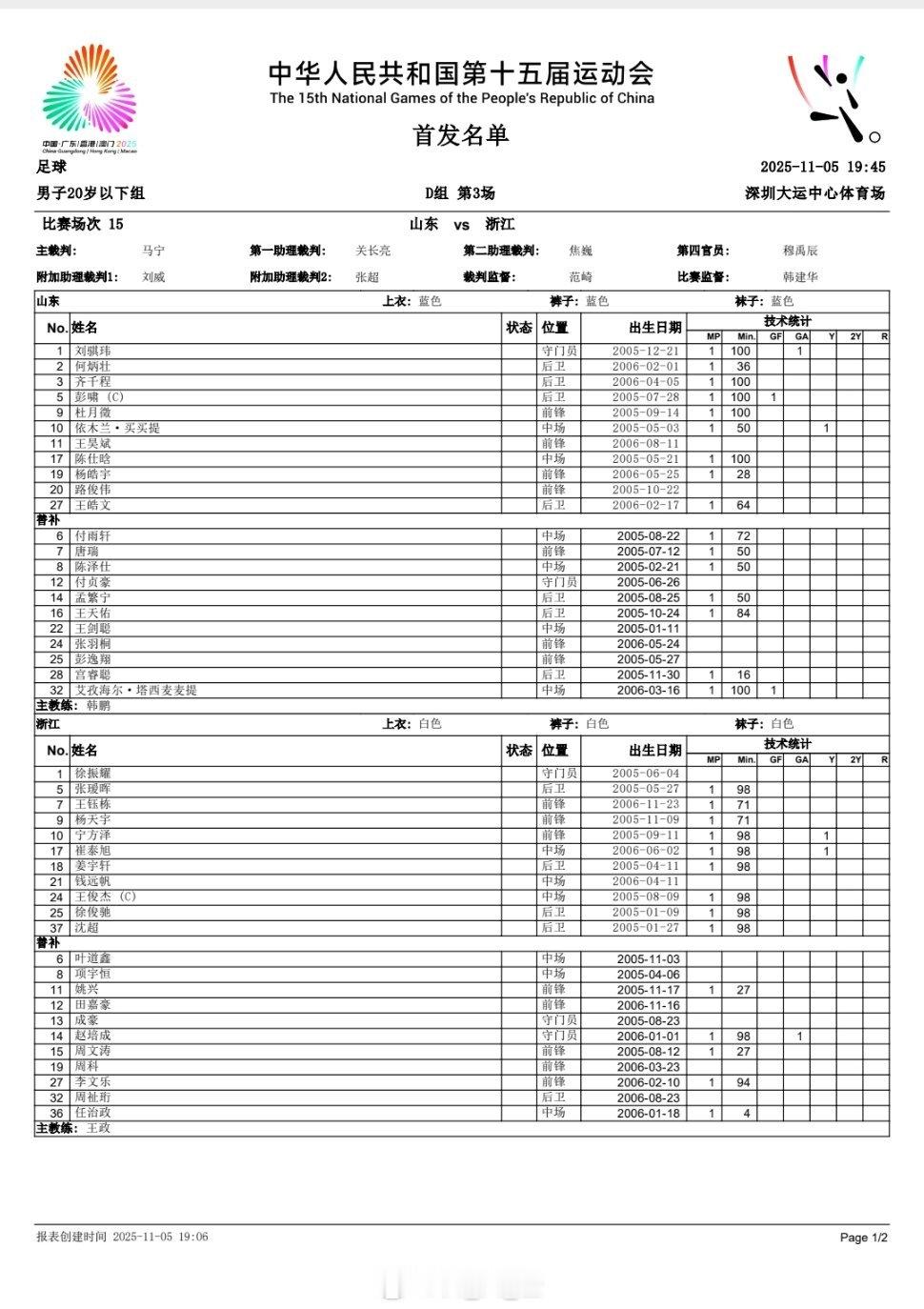 今晚19:45,全运会山东U20 VS 浙江U20,目前看来没有官方直播。
