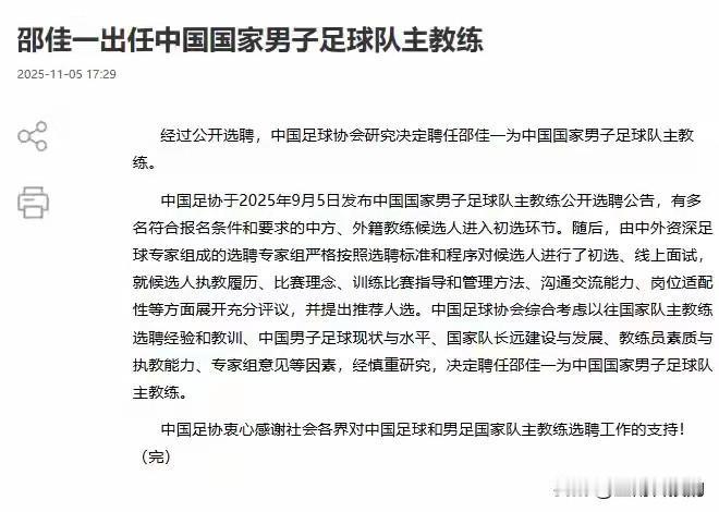 邵佳一当国足主帅了!这消息像颗炸弹,直接把球迷群炸开了锅。 说实在的,第一反应是心里咯噔一下。老邵球员时代没得说,脚法好、意识佳,德甲都踢得风生水起。可教练这行当,跟踢球真的完全是两码事。他在青岛西海岸就带了一个完整赛季,成绩不温不火,现在直接来带国家队,感觉这步子迈得有点大。 但转念想想,这些年洋帅请过,老帅也请过,钱没少花,效果也就那样。现在换个思路,让了解中国足球的年轻教练试试,说不定真能折腾出点新花样。邵佳一这批球员,是经历过中国足球最辉煌的年代的,他懂球员心理,也了解现在的年轻队员——这些可能比战术板更重要。 其实我们球迷心里都清楚,就现在这批球员的水平,你让瓜迪奥拉来带也未必好使。关键看主帅能不能把队伍拧成一股绳,让队员在场上玩命。还记得高洪波第一次带队的时候吗?那会儿也没人看好,结果踢得还挺像样。 现在既然定了邵佳一,不如多给点耐心和支持,看看他能不能带来些新东西——敢不敢用新人,能不能打出点精气神。中国足球都到这个地步了,再坏还能坏到哪去?不如抱着点希望,万一有惊喜呢。 毕竟,中国足球需要的不是救世主,而是一个真正了解中国足球、愿意踏实做事的人。希望邵佳一能带来新气象,更希望这次不要再让球迷失望了!