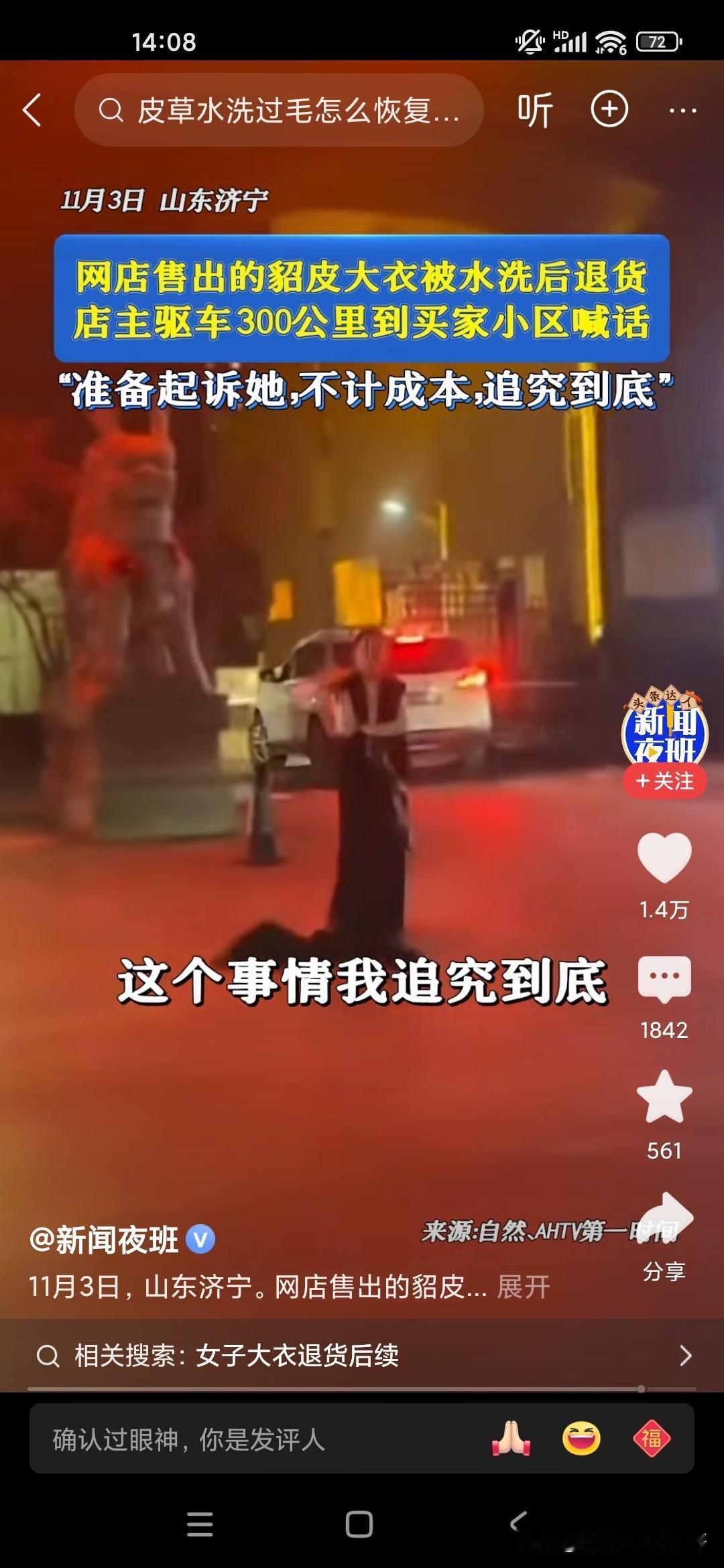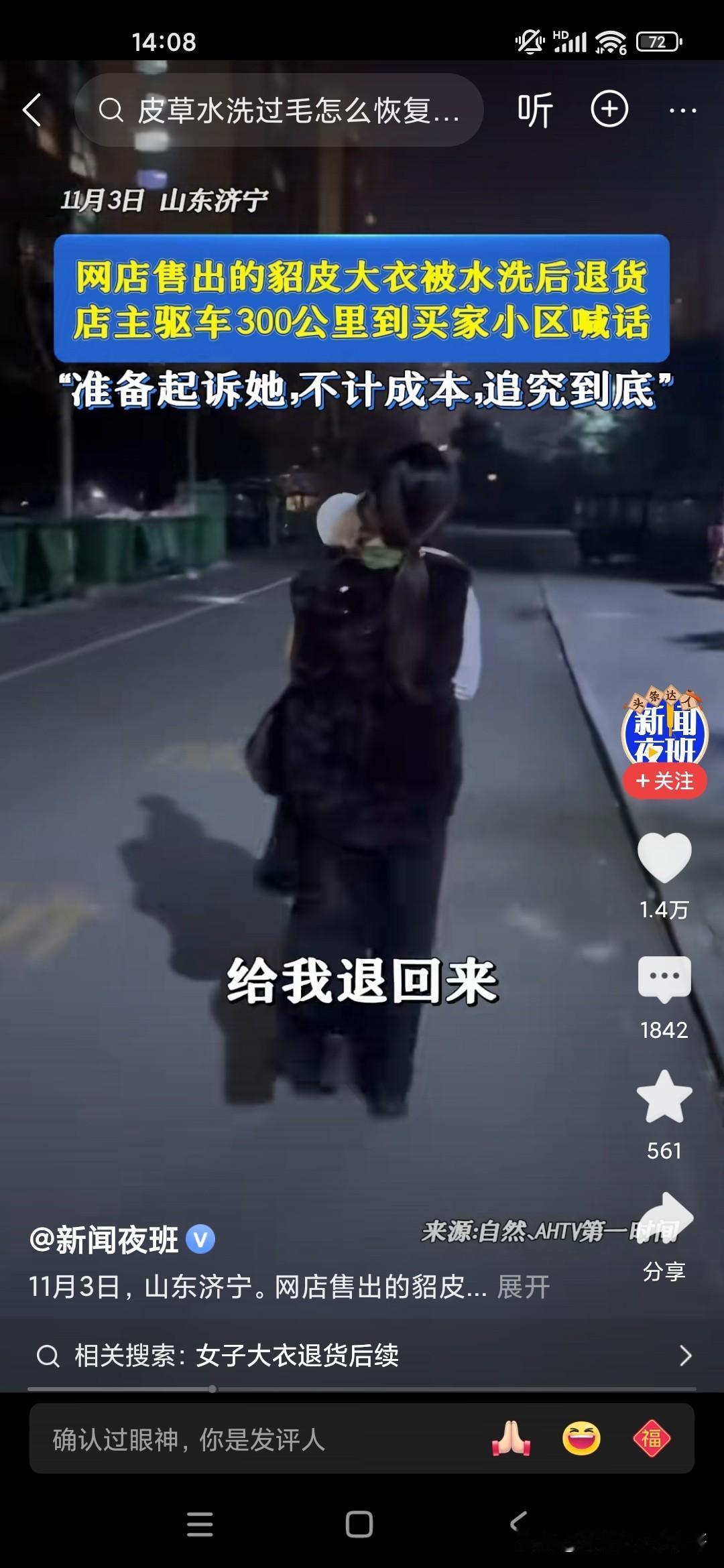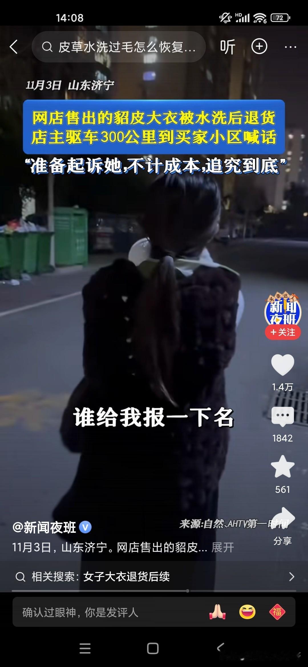 这个商家也是真敢追究,有一个20多岁的小女孩在网上网购了一件貂皮大衣,都已经穿了,穿了一水了,已经洗过了,结果又要退货,因为很多商家他不能立即收款的,一般是两周才可以到账,所以女生的话就用完之后,然后说要退货,但是已经用过了,标签都已经用水洗过了,这个电商的老板娘呀,无法容忍,根据小女孩提供的地址拿了一个大的扩音喇叭去那个小区里喊,电话号码是多少?哪个小女孩报上名来再说,一定要追究她一定通过法律途径起诉她,把这个小女孩吓得像缩头乌龟一样,不敢出来,你说怎么会有这么自私的人呢?怎么有这么不要脸的人了,要么就买下来,就不要做这种事儿,这种事非常缺德!