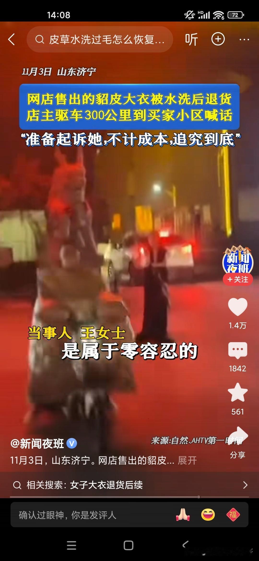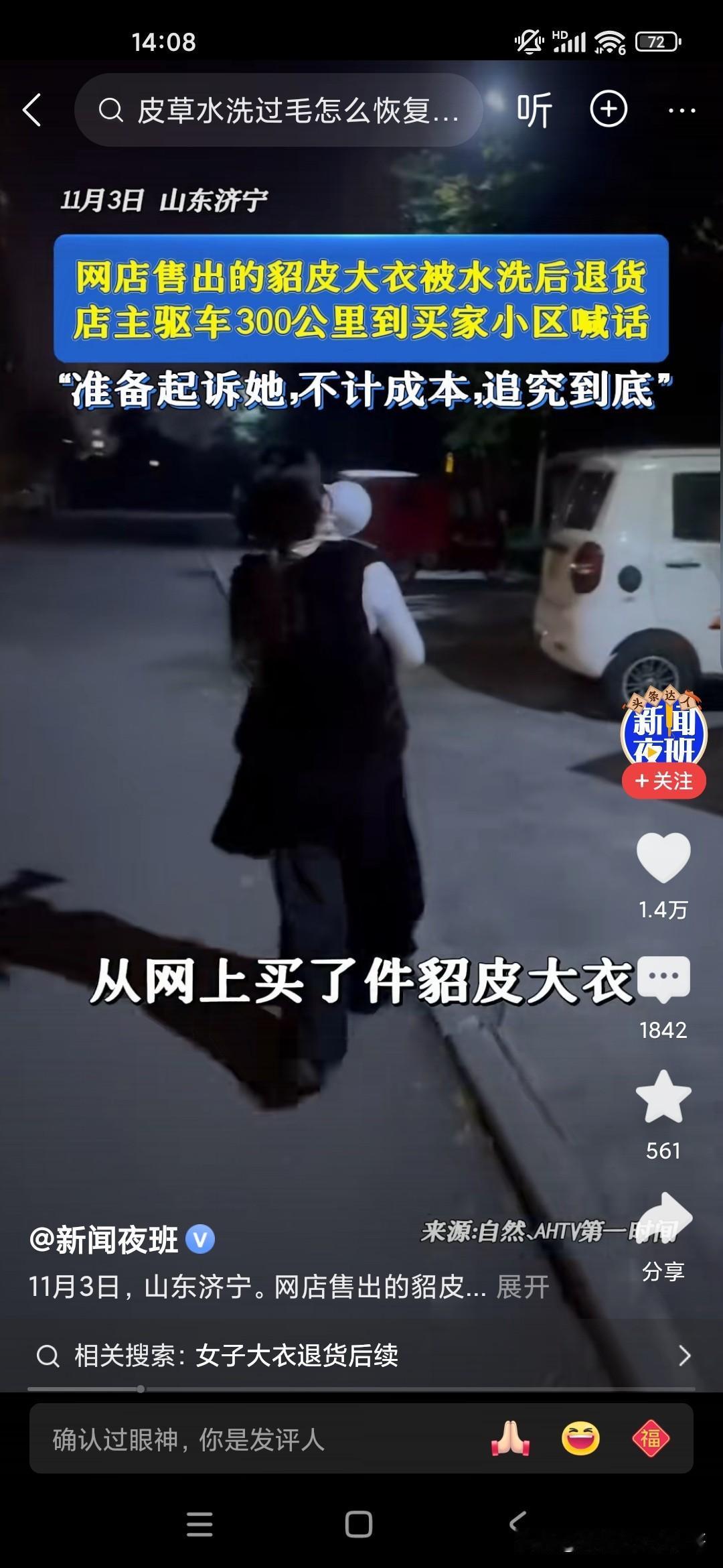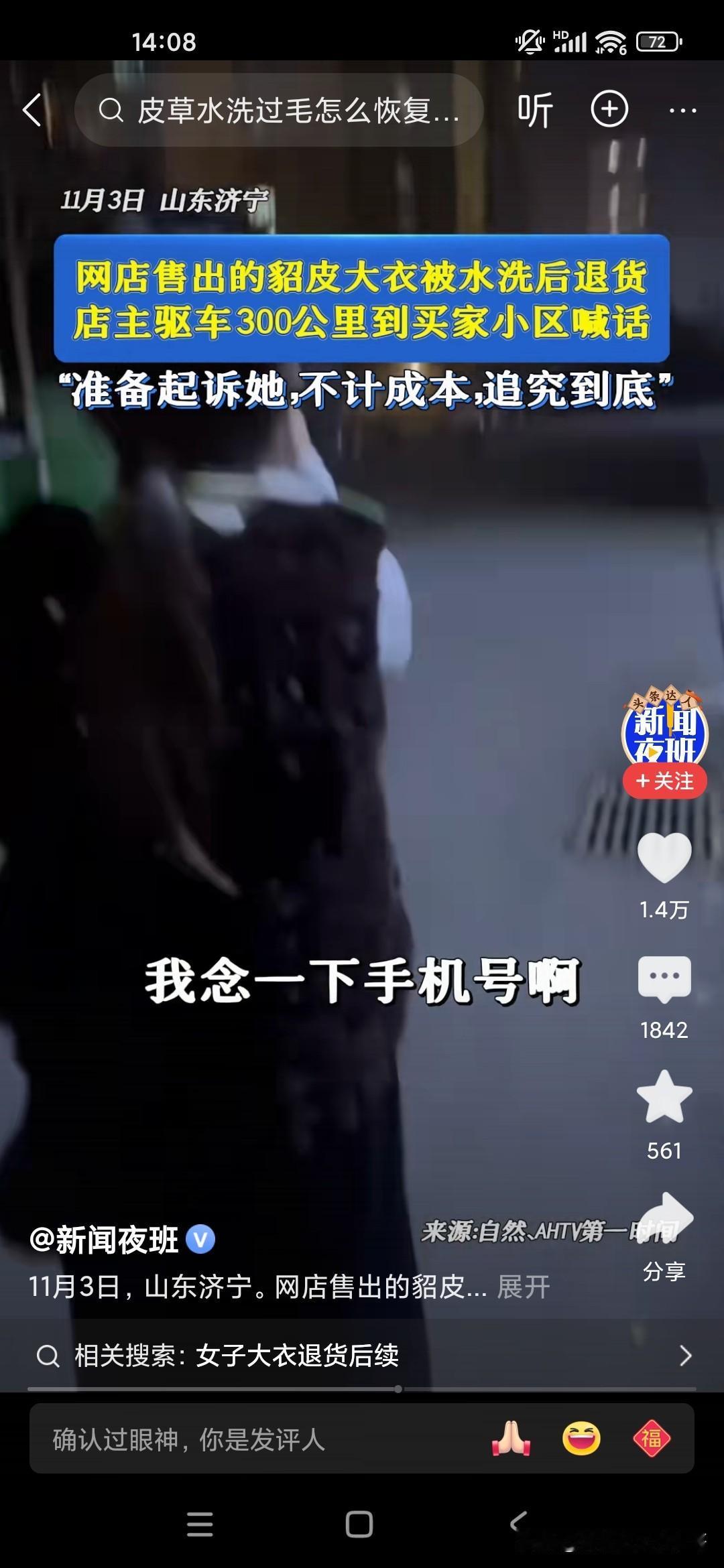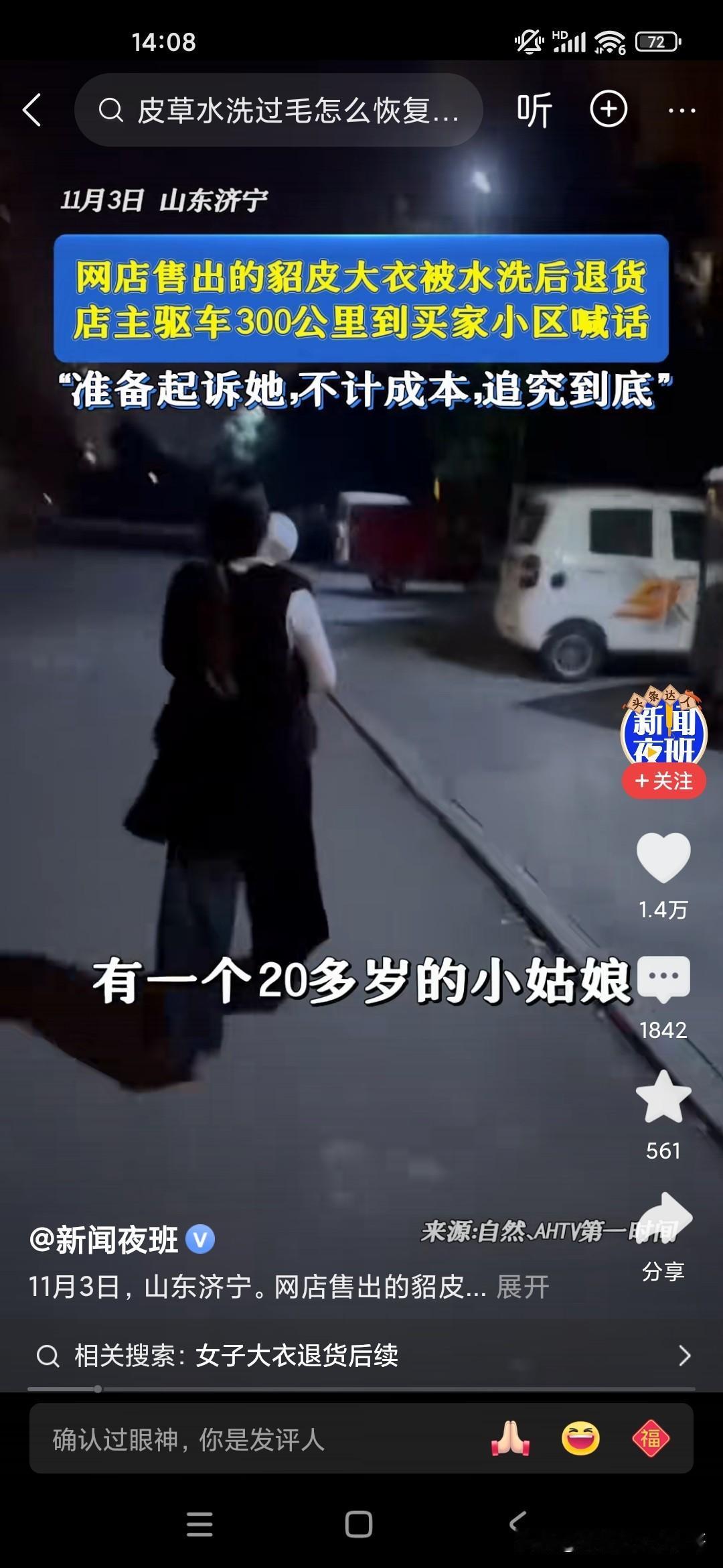 这个商家也是真敢追究,有一个20多岁的小女孩在网上网购了一件貂皮大衣,都已经穿了,穿了一水了,已经洗过了,结果又要退货,因为很多商家他不能立即收款的,一般是两周才可以到账,所以女生的话就用完之后,然后说要退货,但是已经用过了,标签都已经用水洗过了,这个电商的老板娘呀,无法容忍,根据小女孩提供的地址拿了一个大的扩音喇叭去那个小区里喊,电话号码是多少?哪个小女孩报上名来再说,一定要追究她一定通过法律途径起诉她,把这个小女孩吓得像缩头乌龟一样,不敢出来,你说怎么会有这么自私的人呢?怎么有这么不要脸的人了,要么就买下来,就不要做这种事儿,这种事非常缺德!
