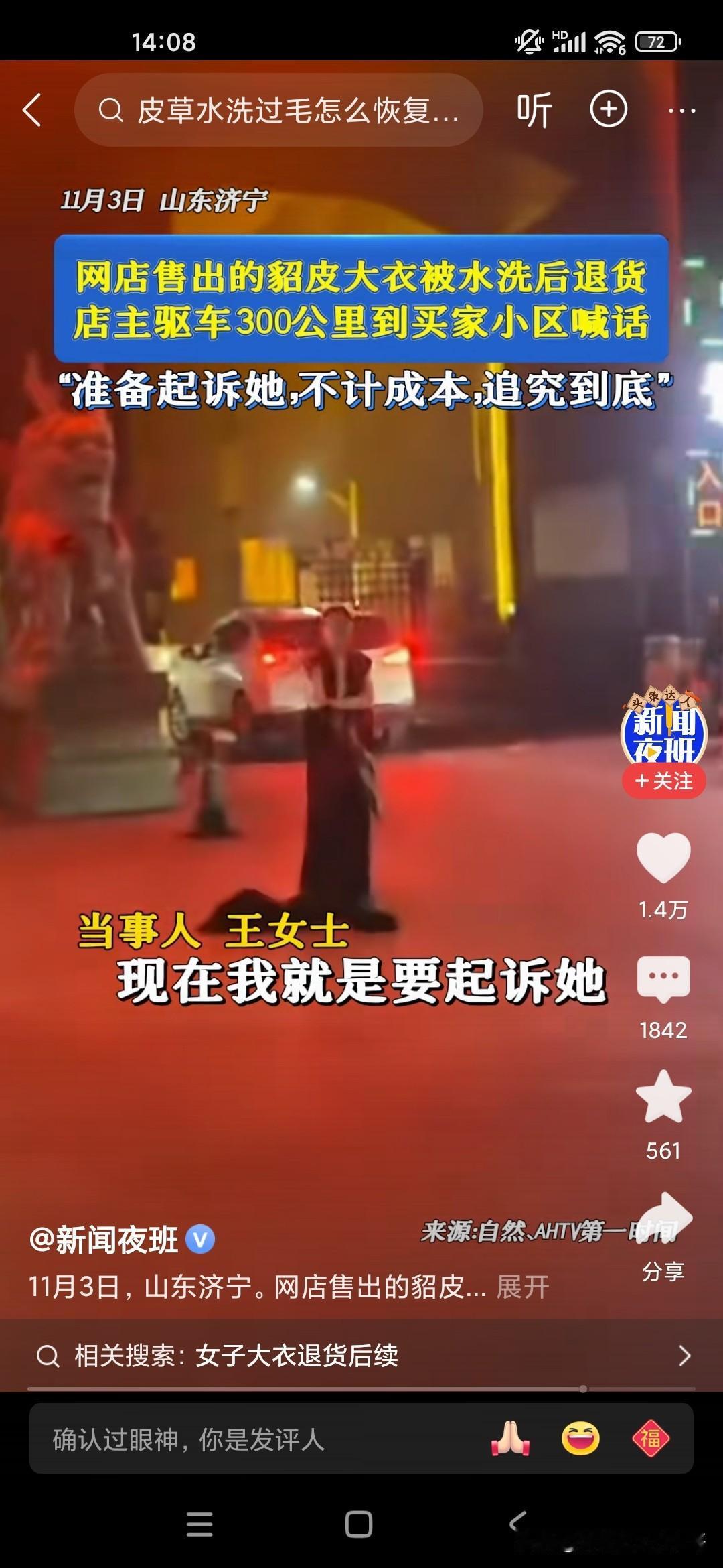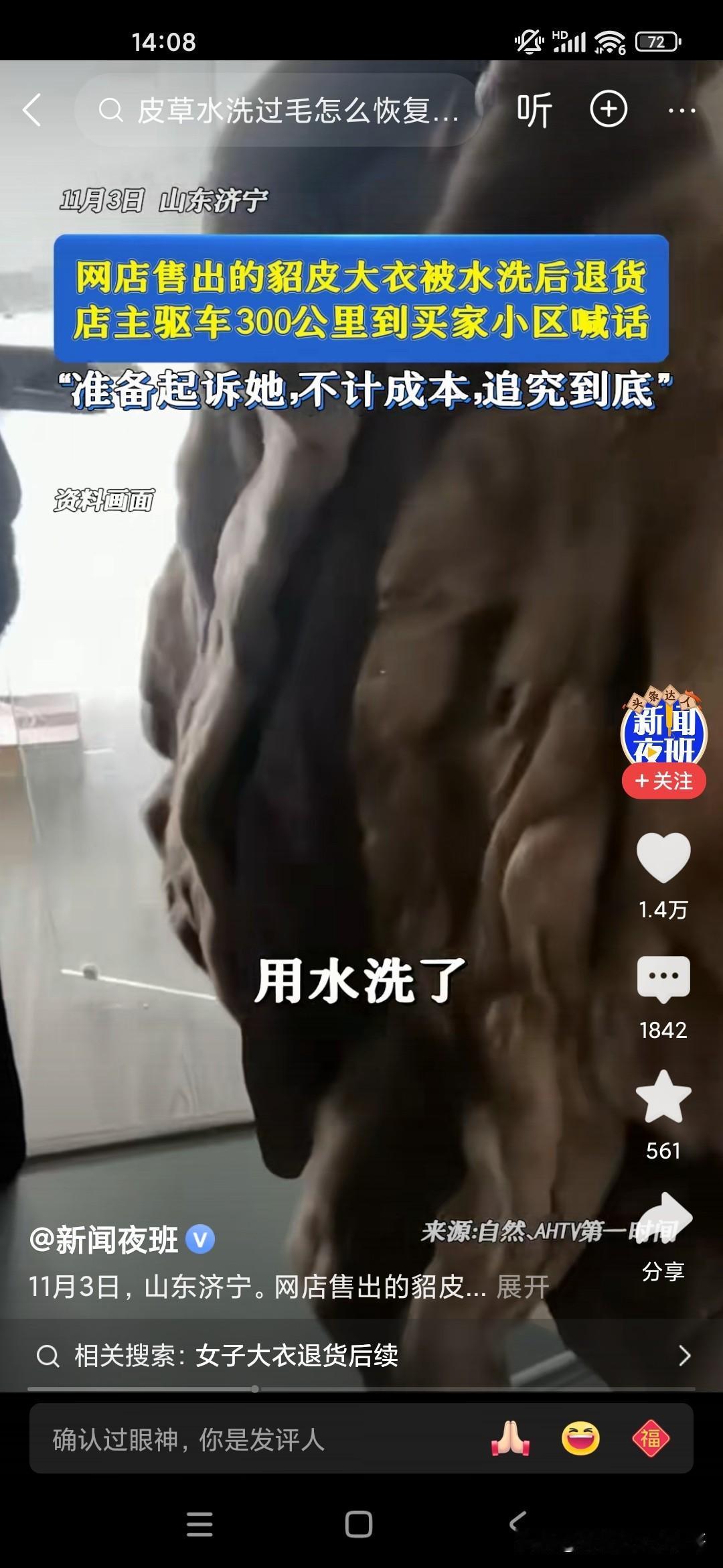 这个商家也是真敢追究,有一个20多岁的小女孩在网上网购了一件貂皮大衣,都已经穿了