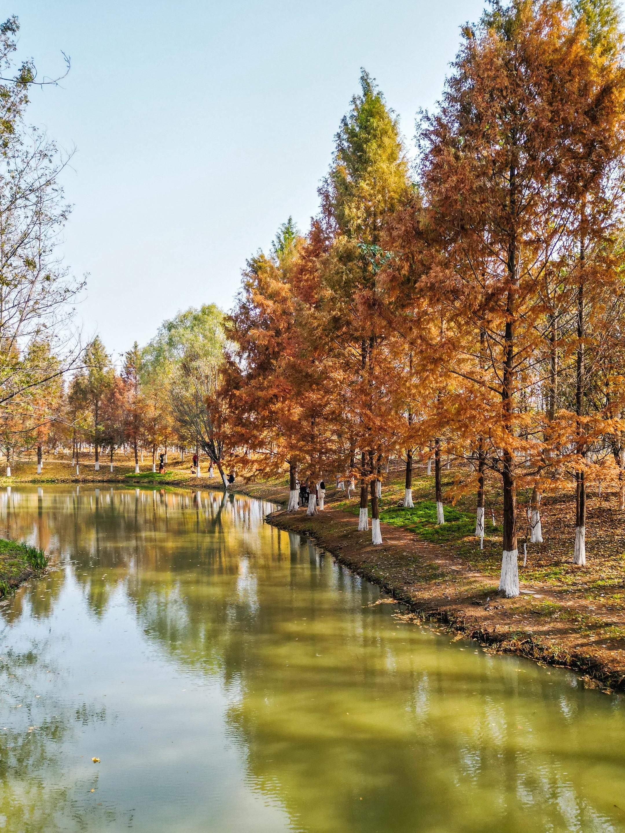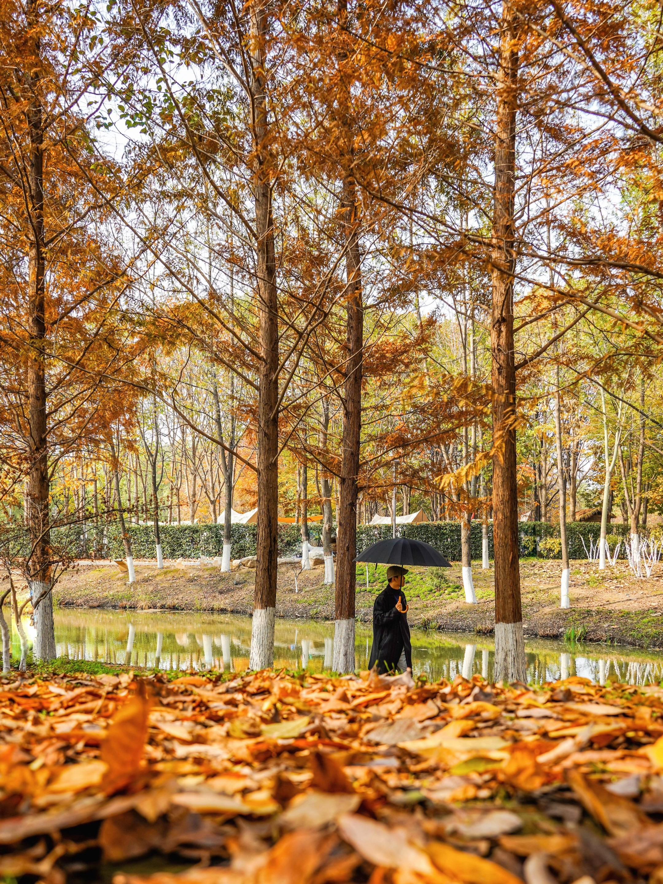西安秋日调色盘🍂小众人少景美❗️。西安的秋色愈加浓厚 基本该红该黄的都已经差不多了 今年的水杉还是可以期待下的 相比较人挤人的樊川公园水杉 浐灞湿地公园这边规模不大 但是主打一个相对人少清静毕竟比较远 湿地公园很大 有水杉的片区有几处 · 🚗交通 公共交通不太方便,打车或自驾到草滩门(西门),然后导航步行到稼墙园,旁边湖边就是一处拍水杉的打卡处