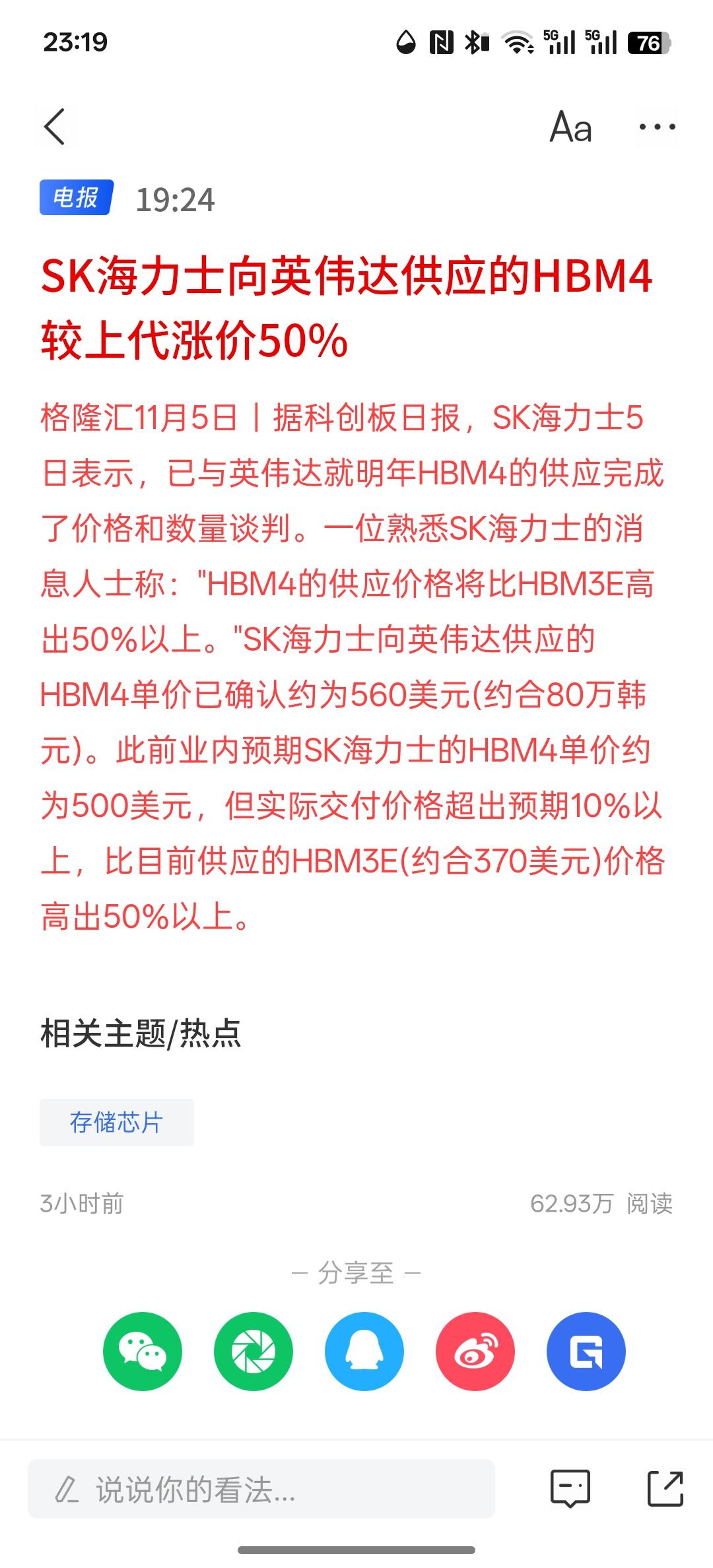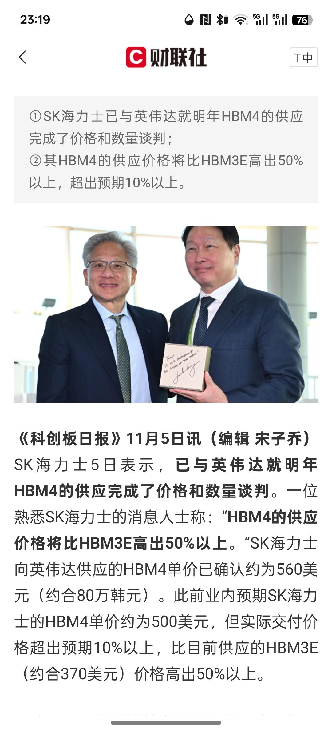 明天芯片半导体板块涨,SK海力士拔得HBM4头筹:与英伟达谈拢 价格较上代涨50%,那目前在芯片半导体以及其他材料方面的价格都在上涨,最近铜箔也在实现价格上涨,整体原材料的价格上涨,那么芯片价格必然会上涨,因为现在对芯片的需求量增长非常快,最近储存芯片价格也在上涨,储能芯片的价格也要上涨,而且台积电的代工芯片价格也在上涨!铜箔的价格上涨,芯片价格必然会上涨,AI芯片需要用到大量的铜箔! 那现在芯片行业成为了发展的黄金周期,而且这个周期相对比较长,因为AI人工智能的发展,它不是一两年,它目前是一个长期发展趋势,而且现在的AI人工智能发展还属于早期发展阶段,还属于一个探索阶段,但中国在AI应用场景的落地快于美国,中国目前也在实现国产芯片替代,而美国也在加速布局全球AI市场!