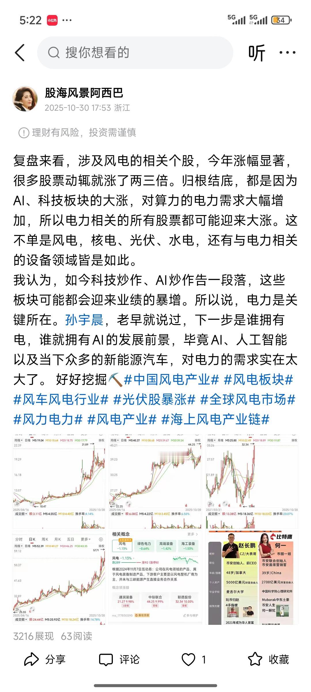我在10月30号的微头条就发文称,要高度关注与电力及电力相关设备的领域。毕竟孙雨晨也提到,接下来明后年的投资主要聚焦在与电力相关的方面,毕竟万物的尽头是电。尤其是AI、人工智能,还有新能源,对电力的需求极为庞大。 今日,与电力相关的板块,特别是电力设备板块迎来了大爆发。仔细观察会发现,电力设备板块其实一直在上升通道中运行,今日正式启动,预计接下来要开启一段主升浪了。咱们不妨看看,能否从这些电力强势股里分一杯羹。 光伏电力 亿盛电力 电力需求预测 电力四大赛道 电力行业资讯