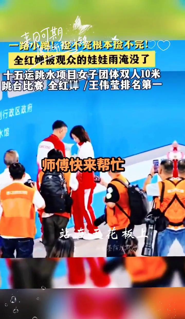 全红婵一跳封神,玩偶砸得跟下雪似的。 捡都捡不完,喊教练来帮忙,笑得比跳水还脆。 92分那一下,水花小得像没溅起来,观众却炸了锅。 她不是高高在上的冠军,是跳完还跟你闹着玩的邻家丫头。 娃娃雨不是混乱,是老百姓最笨拙的喜欢。 组委会说要管,可谁真忍心拦住这份热乎气儿? 她跳的不是动作,是让人想冲上去抱一抱的活生生的光。