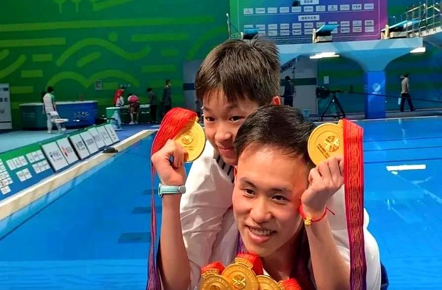 全红婵又上热搜,这次不是因为她跳了多少分的满分水花,而是抱着师兄谢思埸两个月大的