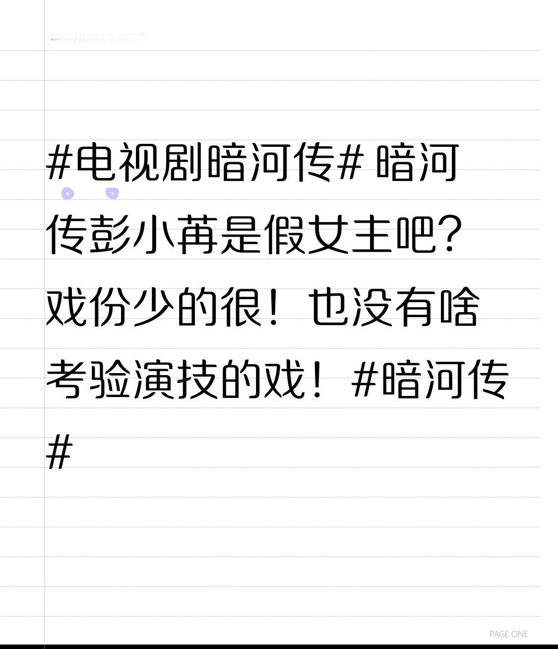 暗河传彭小苒是假女主吧?戏份少的很!也没有啥考验演技的戏!