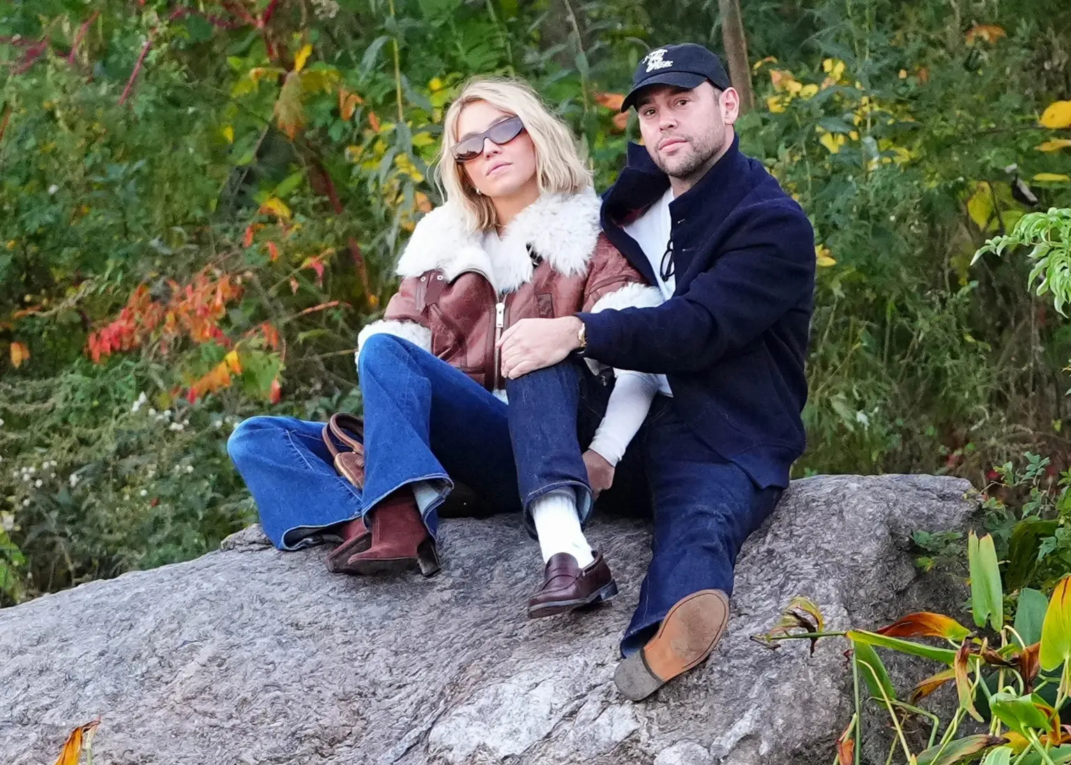 热恋中的情侣:28岁的悉尼妹与44岁的“滑板车”Scooter Braun在纽约中央公园约会&接吻