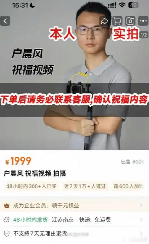 这就是我想要的社会认同啊,哎,没错啊,我开BBA,真的就高人一等啊。同理,那些用苹果手机的,去山姆超市,都是有一定经济能力的,看到这,能不爽吗?爽了就会不停的给他刷礼物。所以别看户晨风粉丝只有一百多万,但实际上,可他那些粉丝的质量可相当多,人群细分的非常好啊。后来,户晨风还在淘宝网点,出售祝福视频有偿拍摄,1999一次。光是拍视频,一个月就有40万的收入。算上流量,杂七杂八的,月入几十万那是轻轻松松。