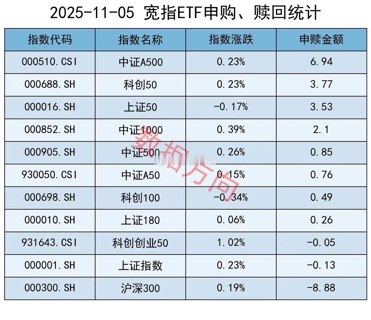 沪深300指数(-8.88亿),净赎回超过5亿。