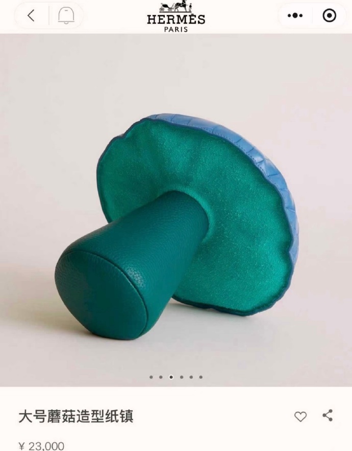 爱马仕回应蘑菇纸镇售价23000元 在爱马仕商品中看到一款售价23000元的大号蘑菇造型纸镇,“蓝瘦香菇”的直真实版。