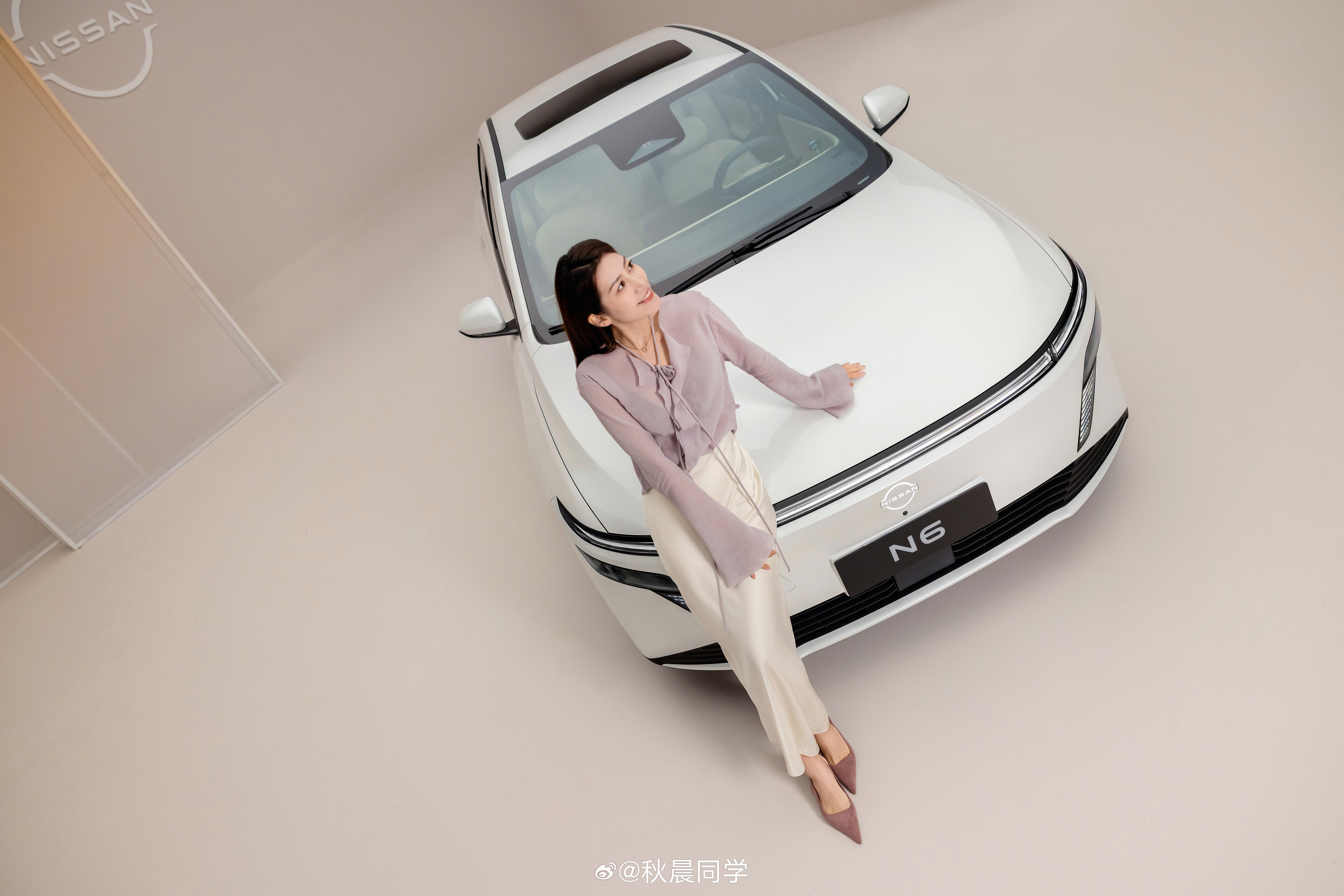 跟日产N6合拍了一组照片~珠玉白的车漆是不是挺衬肤色的夸一下N6整体风迹美学的设