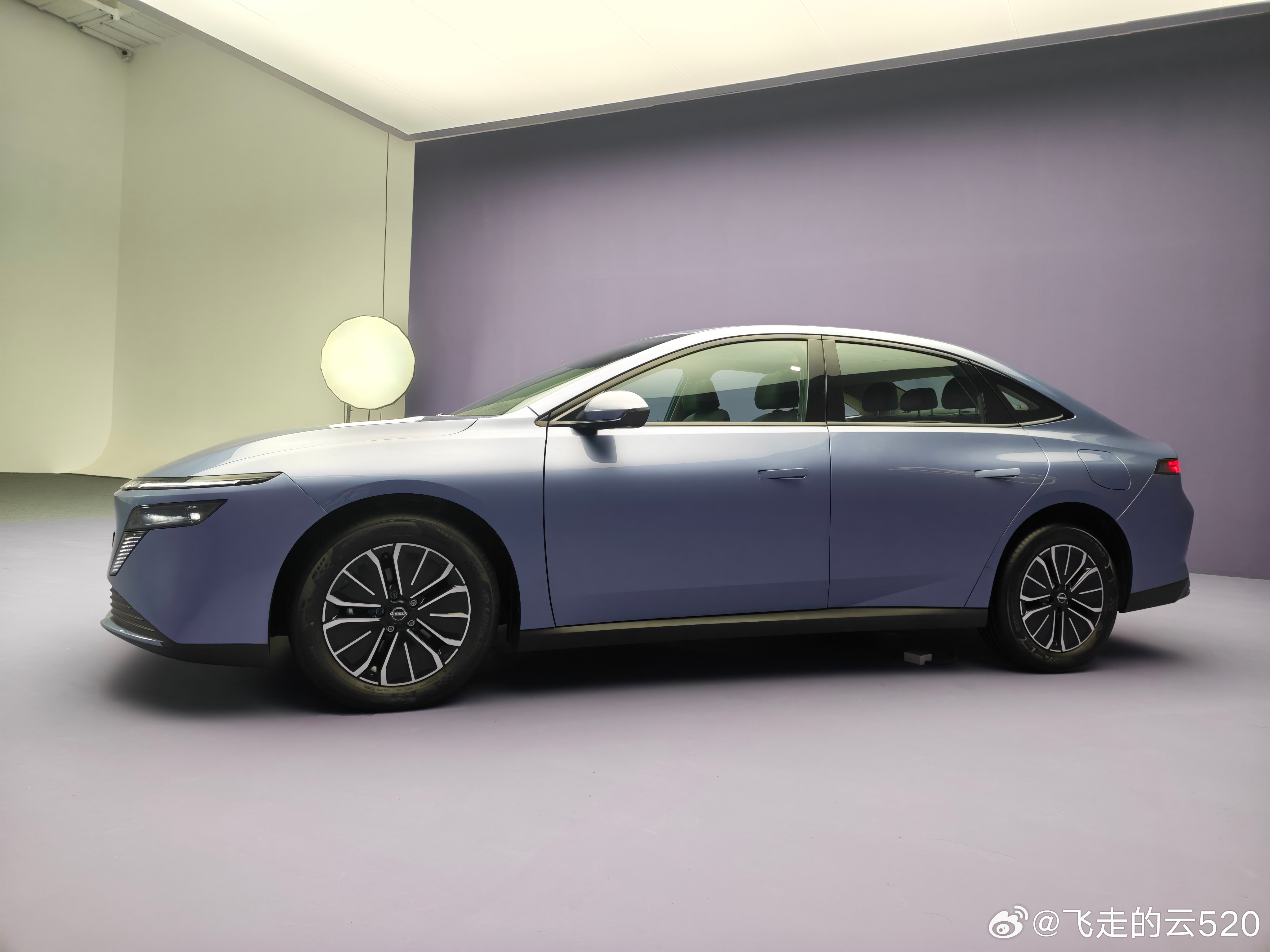 紫色的漆面光泽度非常好,日行灯的设计与N7有了变化,与天籁更接近了。前脸的整体型面与N7很像,发光LOGO配合风迹日行灯,夜晚的辨识度很高。