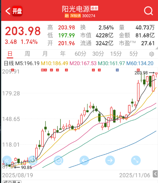 $阳光电源sz300274$突破对子顶新高。