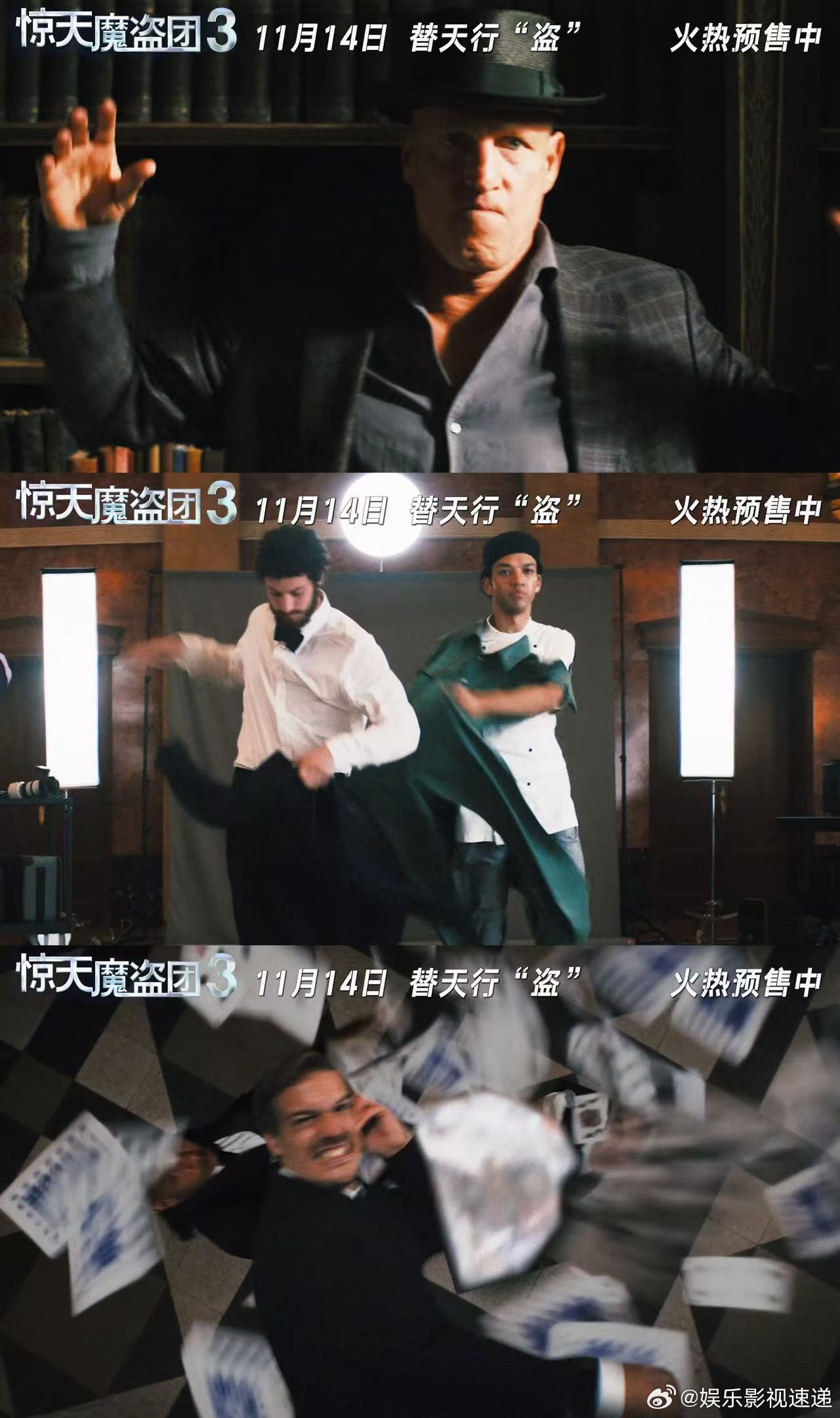 惊天魔盗团3预售开启 十年老粉的青春回来了,摩根·弗里曼依旧神采奕奕,四骑士的默契配合让人起鸡皮疙瘩。这次还有更多创意魔术和高能反转,11月14日电影院不见不散。