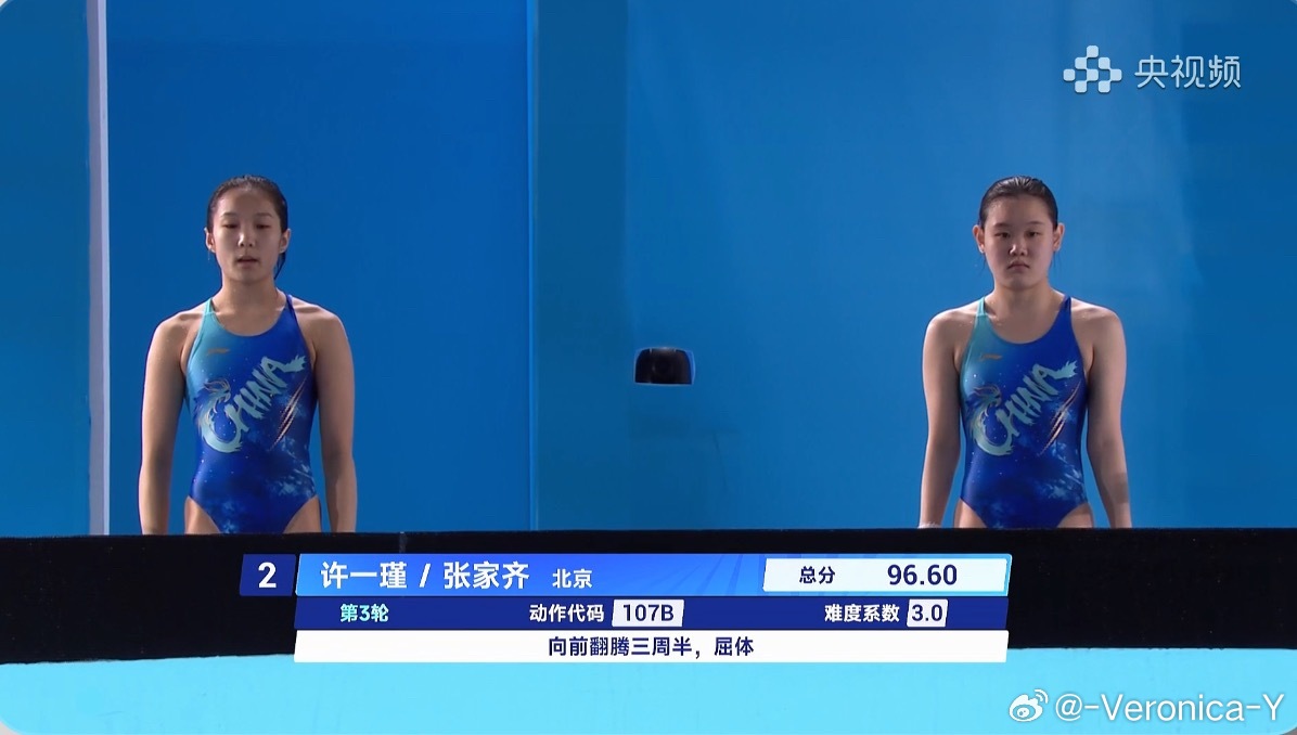 女子双人10米跳台·预赛第三跳陈芋汐/掌敏洁76.50张家齐/许一瑾68.40李