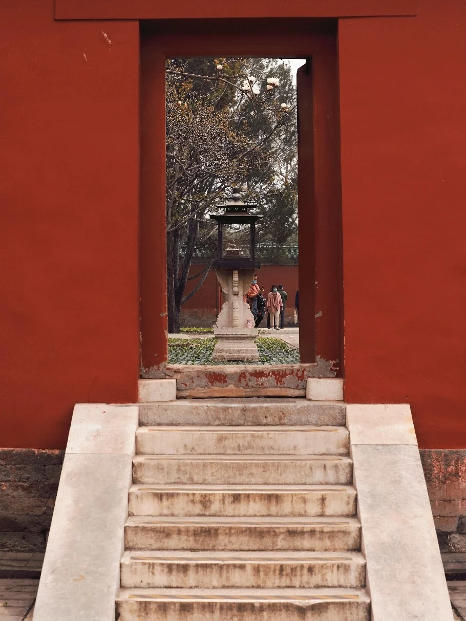 ③里面有很多门,可以从门当前景拍一个框架构图的玉兰。