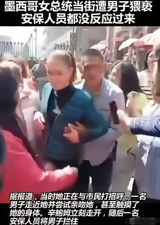 【这都不算猥亵?墨西哥女总统的尴尬】 背后搭肩搂抱,企图强吻、袭胸,如此明显的动作竟然发生在墨西哥女总统身上。 11月4日,墨西哥女总统辛鲍姆参加完会议后,与市民正在互动时,突然遭一社会混混“猥亵”的视频在网上疯传,许多人在怀疑和指责时,更多的是惊讶! 该男子立刻被警察逮捕,目前正被关押在当地性犯罪调查处。自称当时“喝醉”了,这是当天对第三名女性实施的行为。像这种行为在我国即使喝酒了也属于犯罪。 11月5日,辛鲍姆愤然提起状告诉讼,称此举“是对所有女性的冒犯与侵犯”。然而,墨西哥妇女事务秘书处却指出“亲近民众并不是侵犯女性身体界限的理由”。 从视频可以看出,确实有点“擦边”。辛鲍姆辩解的理由是,任何男人都没有权利侵犯女性的身体空间,骚扰是一种犯罪,到了全国都要理解的时候了。 她之所以这么说的理由是,这种“骚扰”行为在墨西哥司空见惯,特别是在2020至2021年总统选举期间,来自多个联邦州的60名参加了选举的女性,45%透露自己经常面对性别政治暴力,包括被排挤、歧视、性骚扰、人身攻击或虐待。 大家都知道,墨西哥是全球犯罪率排行第三的国家,在过去的6年时间里,墨西哥在拉丁美洲的“女性谋杀案数量排名”高居第二,每年有3000多名女性被杀,平均每天超10人死于非命,其中包括“性侵”等恶劣行为。 辛鲍姆作为墨西哥首任女性总统,在亲身经历的情况下,如何改变当前社会现状,维护女性权威,是摆在面前的一个极大考验。