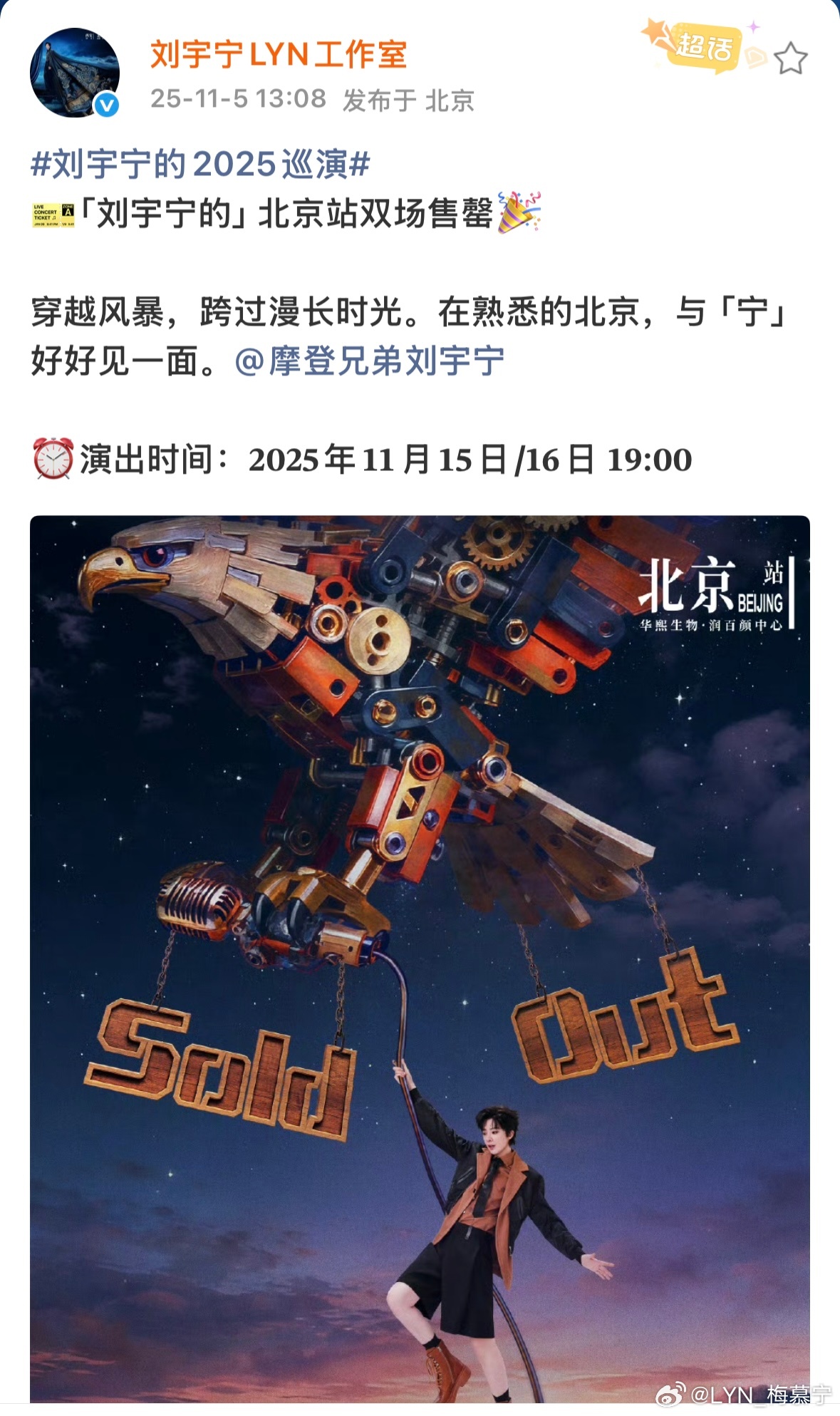 摩登兄弟[超话] | 刘宇宁的2025巡演