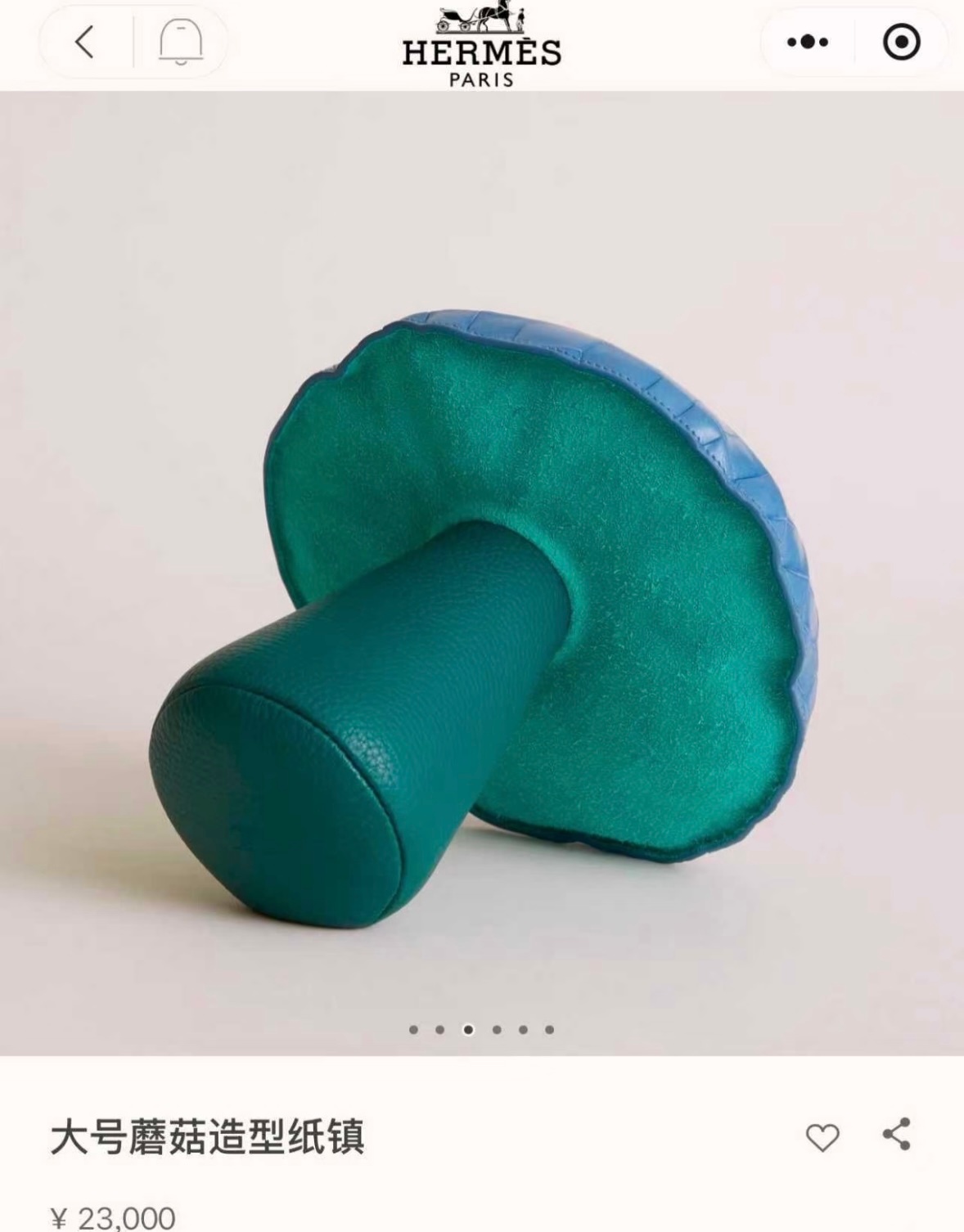 爱马仕回应蘑菇纸镇售价23000元这个蘑菇纸镇两三年前就出过的,当时价格好像一万多,现在价格翻倍了,涨的太离谱了。
