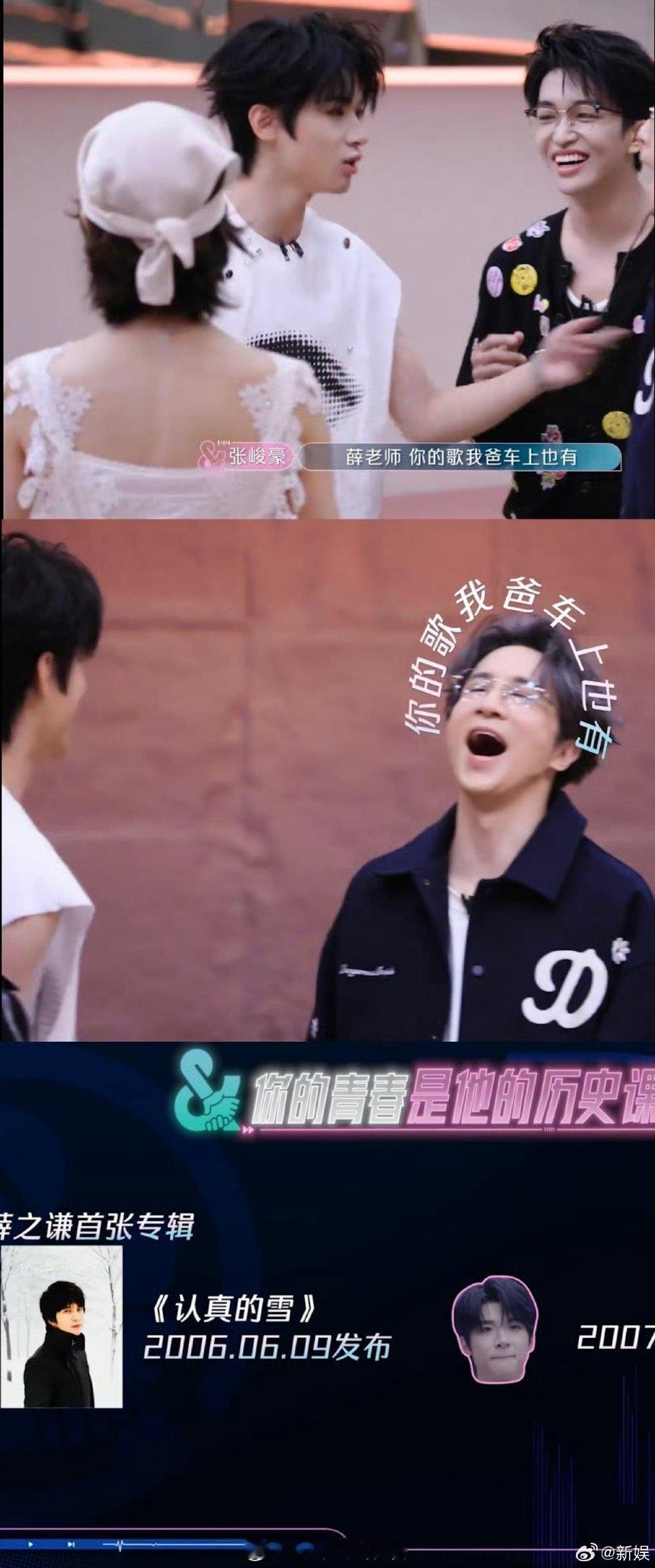 薛之谦的青春是张峻豪的历史课 这是什么跨次元暴击!薛之谦兴冲冲聊经典,张峻豪一句“我爸车上听的”直接让老薛石化。孩子天真无邪的补刀最致命,弹幕全程高能:“原来老薛和《水手》是同一个年代的文物!”