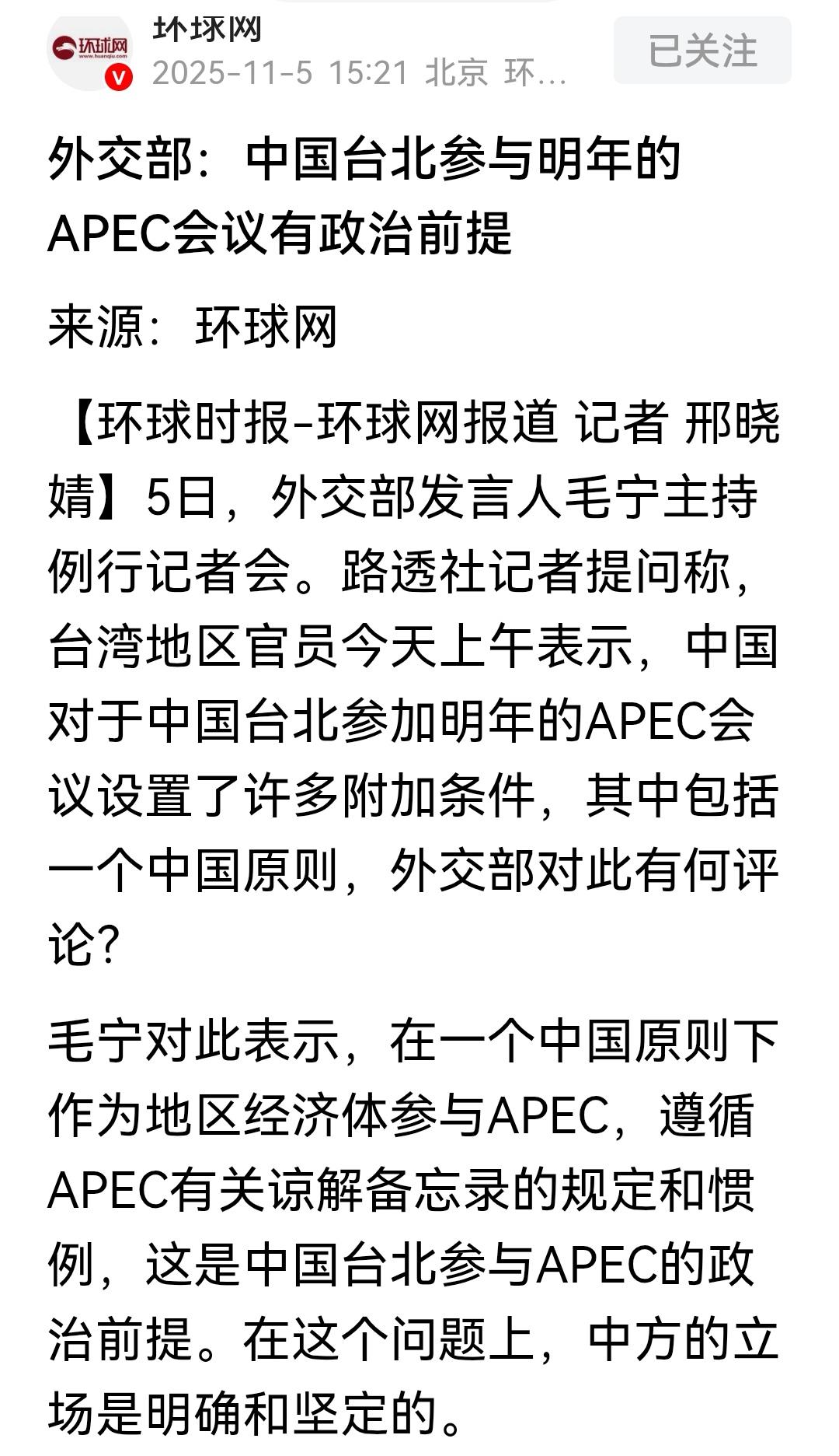 这是台湾地区参与所有国际活动的前提和条件,不仅仅是明年的APPEC会议。
