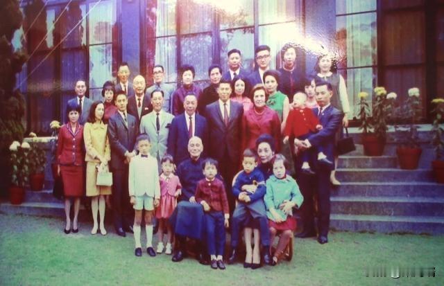 这张照片拍摄于1965年,是蒋中正(蒋介石)在台湾阳明山官邸与家人和亲友的合影。 以下是照片中的部分主要人物: 照片中坐在前排中间的是蒋中正,他旁边抱着孩子的是他的夫人宋美龄。 站在蒋中正身后,穿着西装系着领带的是他的长子蒋经国。 照片中的其他家庭成员包括蒋经国夫人蒋方良、蒋纬国、蒋纬国夫人丘如雪以及他们的子女们。 这张照片记录了蒋氏家族在特定历史时期的家庭生活瞬间。