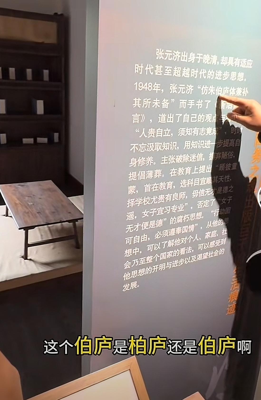 网友说,沈巍今天被馆方赶走,可能是因为他又找茬了[捂脸] 沈巍指着一块展板上的字,说:这个伯庐还是柏庐?你们查一下看看,这个不是我们踢馆,就是很严谨的,因为有可能是柏庐和柏庐是相通的,但是我一直看到的是柏庐,大家查一下看看,我也查一下。不是故意的,不要动不动就提踢馆,我们严谨而已,不要以为踢馆,马上他又赶我走,也不是故意的。 沈巍马上百度,确认是柏庐,馆方写错了[我想静静] 自从“履薄临探”开始,沈巍已经指出多地多处错误了,不知道馆方会不会承认错误和改正?