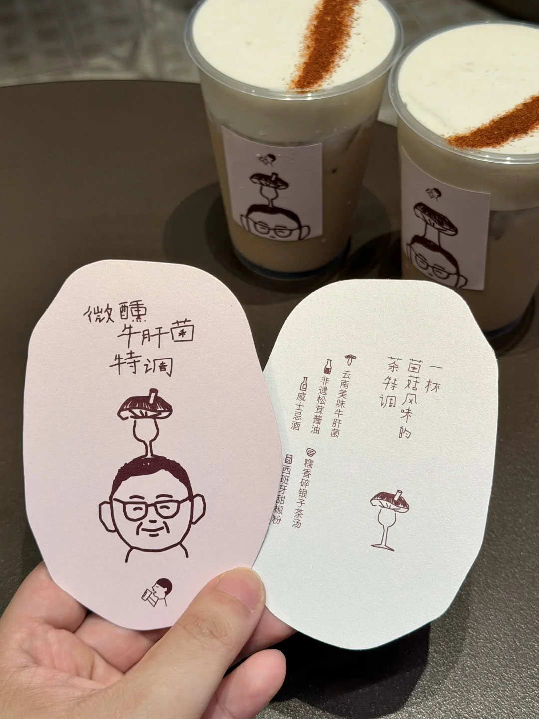 感谢喜茶,人在广州喝上黎老师的牛肝菌碎银子特调了!不愧是米其林级别的创意新品,牛肝菌云顶喝起来像微辣的奶油蘑菇浓汤,甜、咸、辣还有西班牙甜椒粉点缀云顶,我个人其实喝特调是比较在乎层次感的,尤其是微醺版底部的碎银子茶汤了威士忌真的喝到了食材的本味,糯香和酒香融合得恨balance!