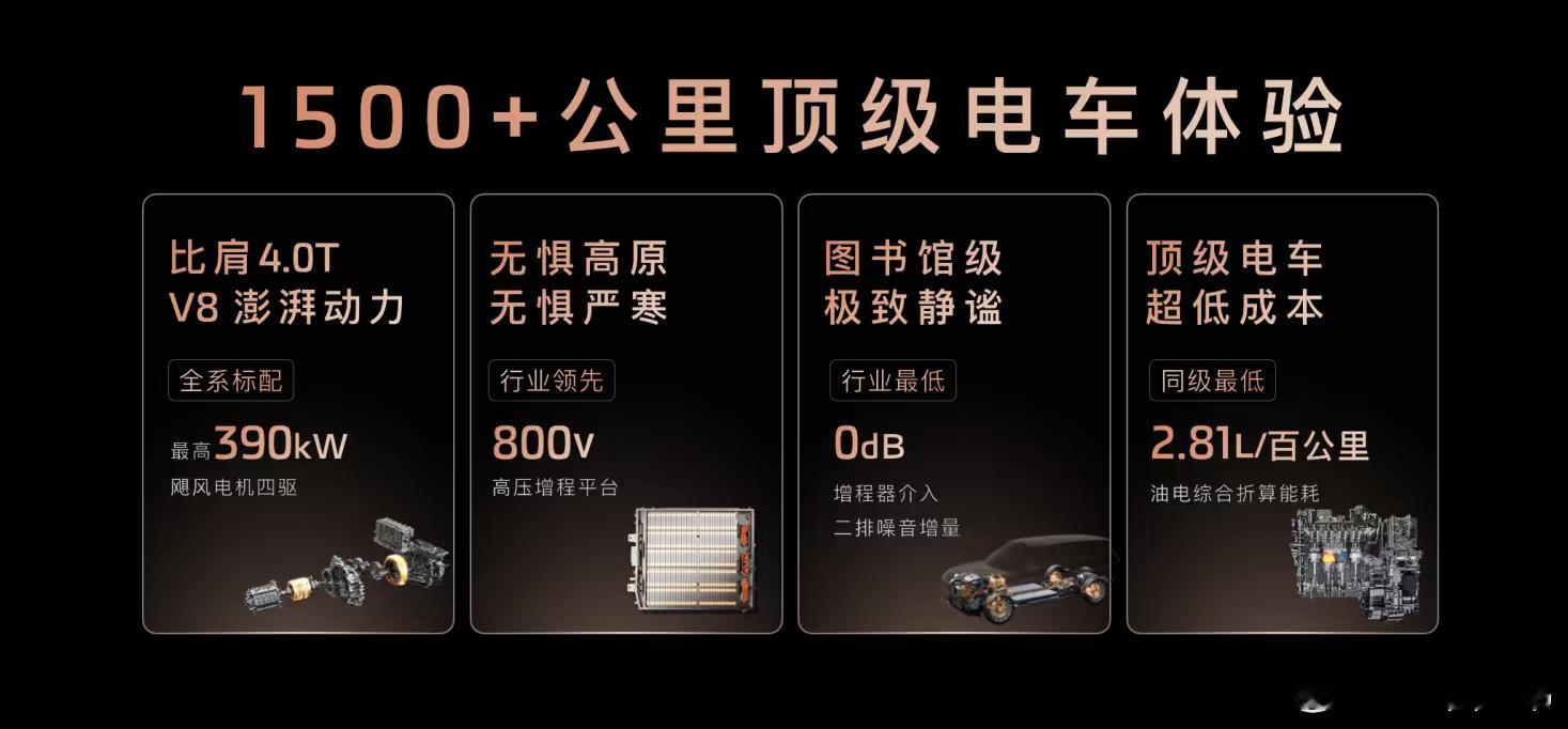 智能方面,全系标配520线激光雷达与英伟达Thor芯片,配合雨夜模式、AI越野补盲等功能,让安全与科技真正落地。座舱内更融合B&O音响、4D机械座椅、瞬净新风等配置,打造出“移动的野奢酒店”般的奢享体验。