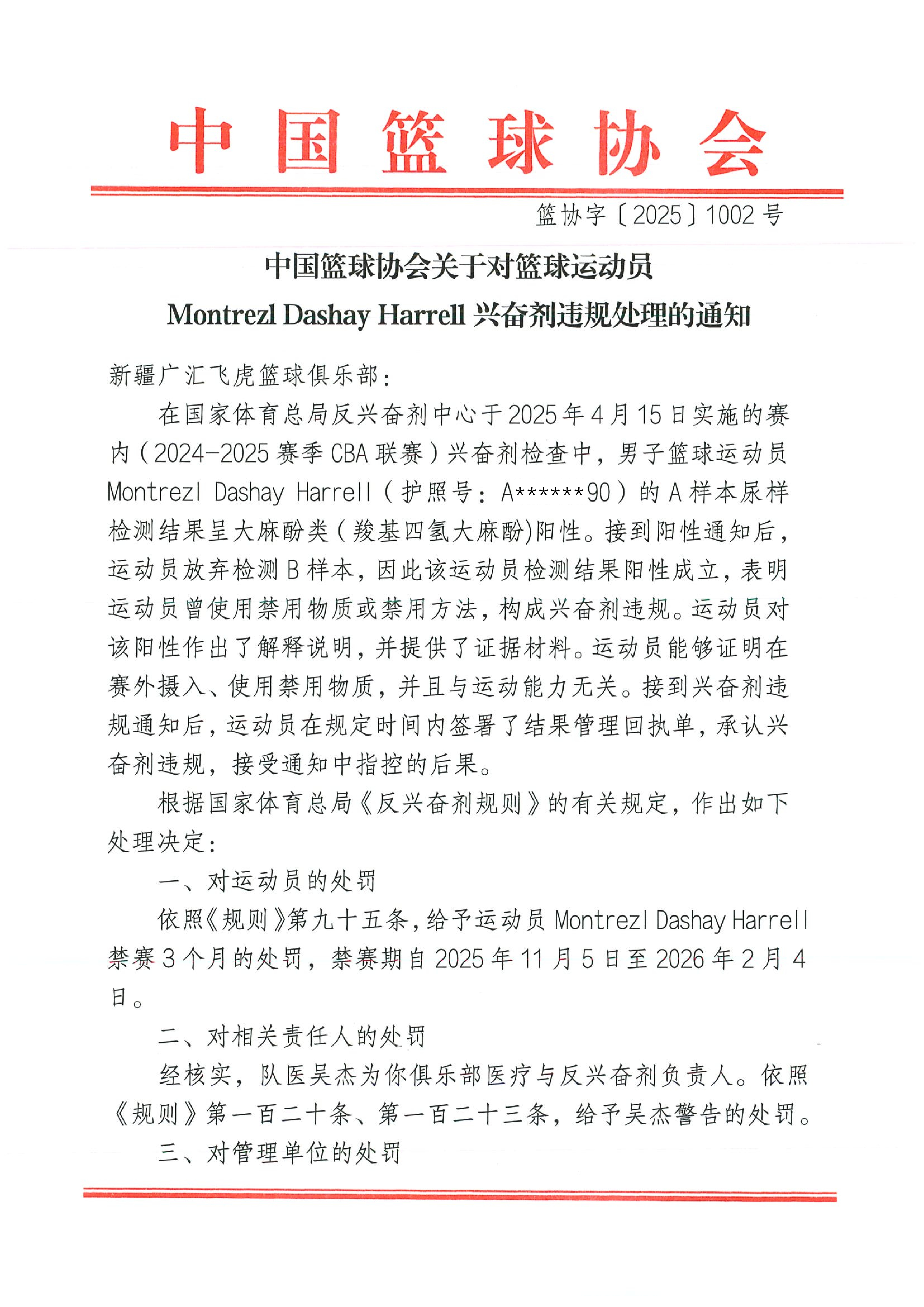 新疆队哈雷尔的处罚是11月5号公布(图三图四)
