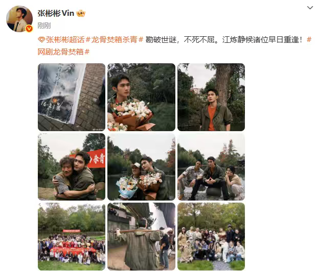 张彬彬龙骨焚箱杀青照张彬彬江炼静候诸位早日重逢