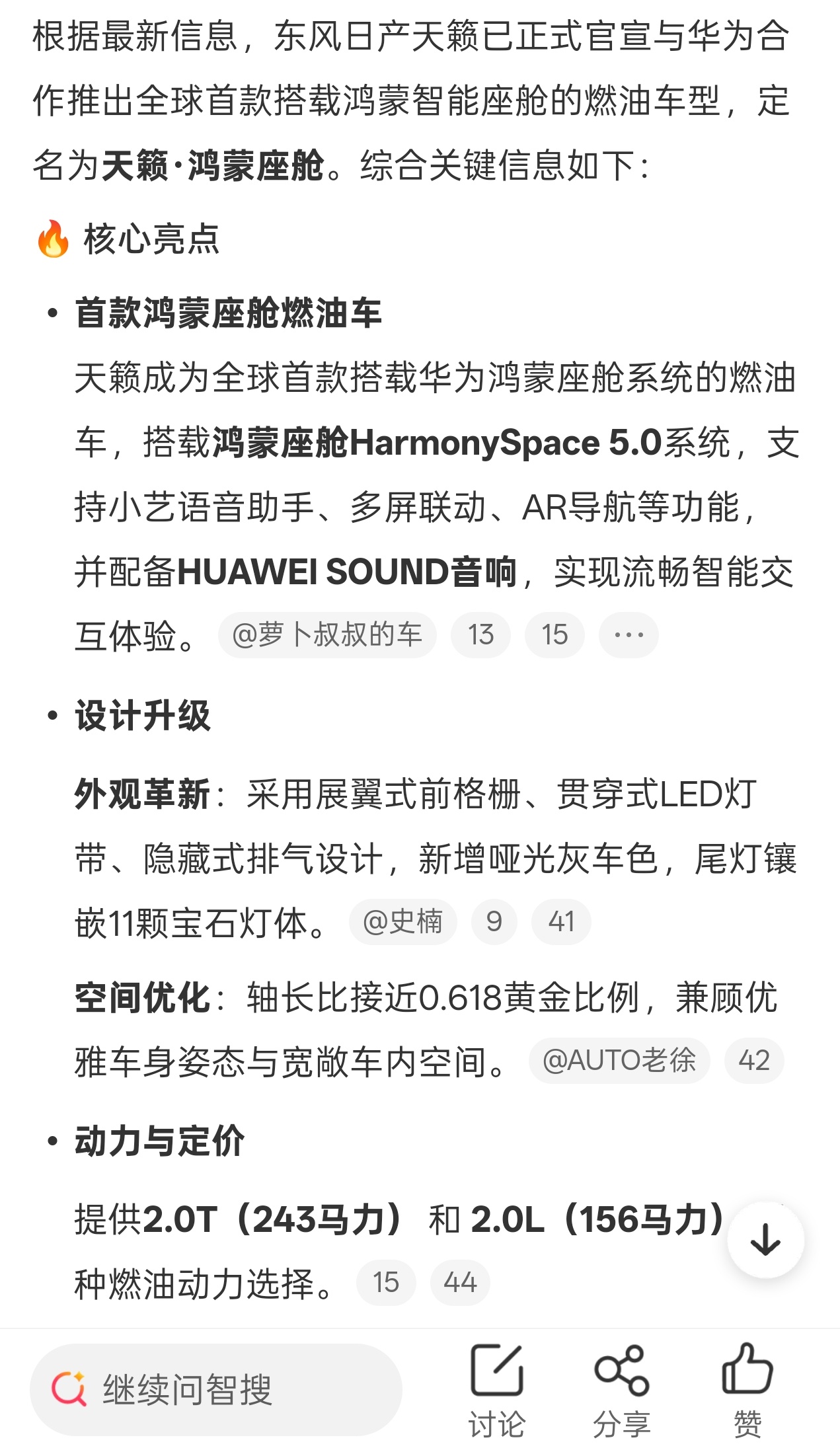关于新天籁的最新消息怎么没了[泪奔]鸿蒙座舱大沙发我很感兴趣,但是这几天没看到什么新内容。