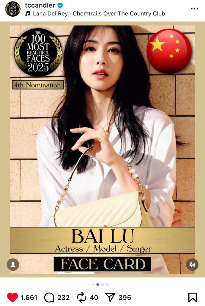 白鹿凭借辨识度极高的长相,成功入选 TCCandler 百美面孔,自然不做作的美感,传递出真实且独特的个人风格。白鹿入选百美面孔白鹿评选TCCandler百美面孔