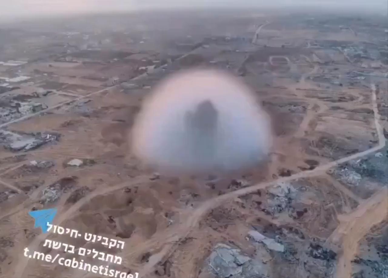 以色列在加沙投掷一种新型炸弹 巴勒斯坦方面声称这是一枚“小型核弹”,但分析表明它很可能是一枚温压弹。 温压弹通过喷射燃料与空气混合物引爆,产生高压冲击波和极高温度。这种炸弹可以摧毁建筑物,并造成类似于核爆炸的超压效应。