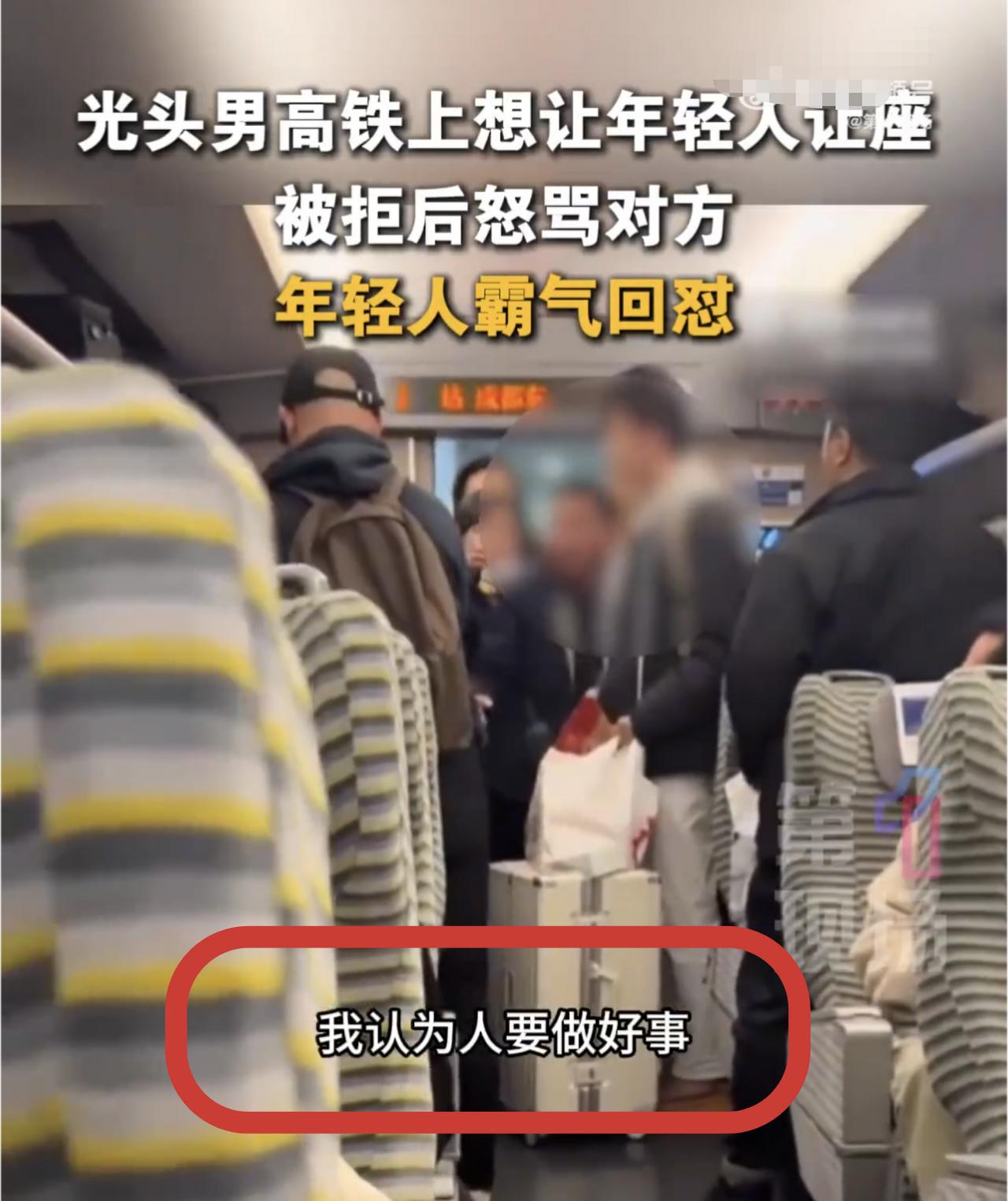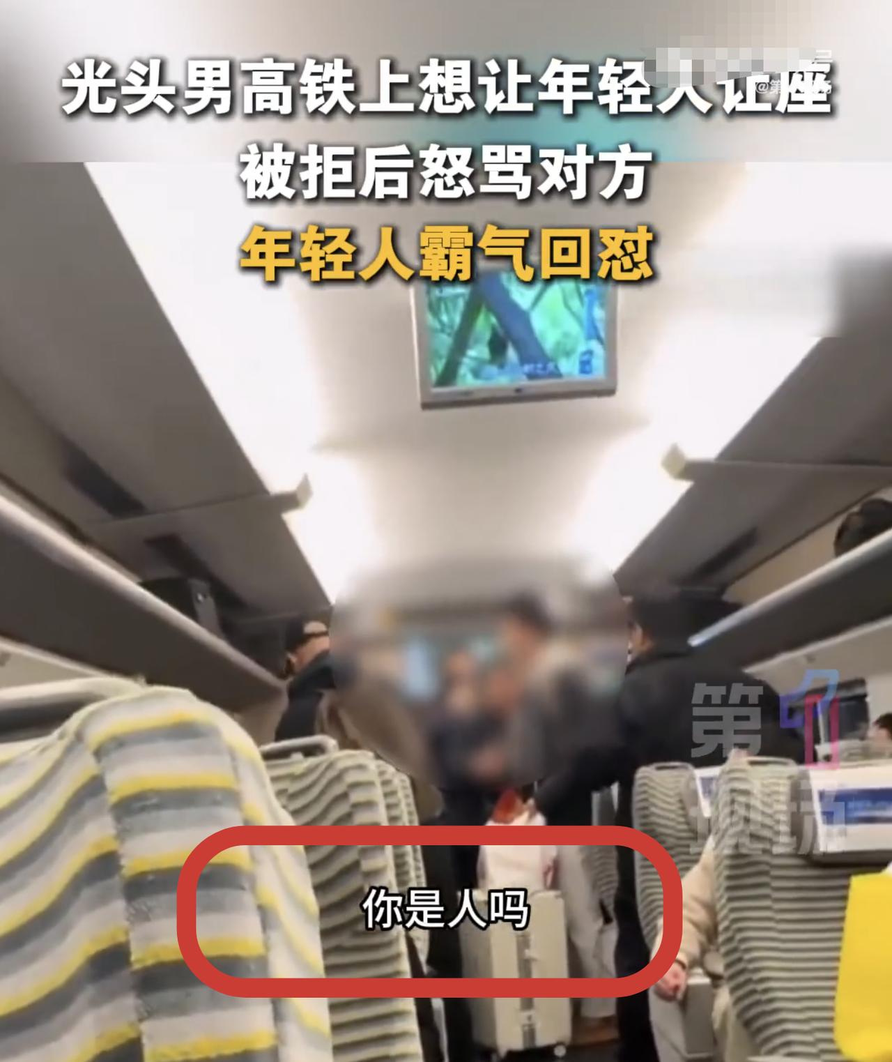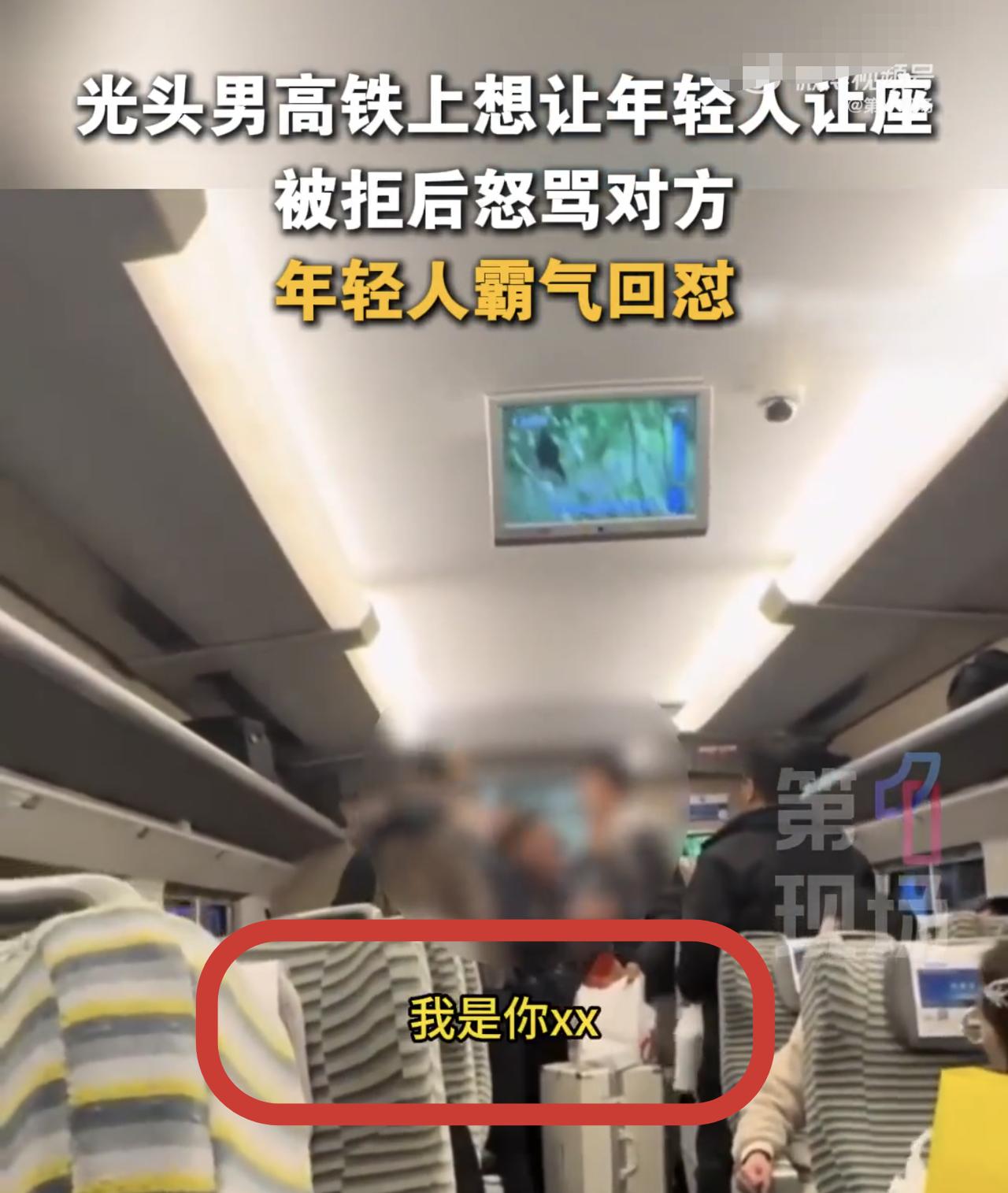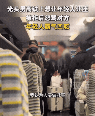 别去道德绑架年轻人[6]!有些长辈咋就听不明白?在四川成都的高铁上,有个光头大爷拿着无座票,不光占了年轻人的座位,还喊着"人得做好事"[捂脸]。 年轻人不同意,他倒先着急了。张嘴就骂人家"出生","你像个人吗"?可谓是嚣张狂妄[震惊]!可年轻人不买他的账,直接回骂:“是你爹,赶紧起来滚”!后来周围乘客把两人劝开了[灵光一闪]。 这段视频一下子就火了,网友们都指责大爷没礼貌,仗着自己年纪大欺负人,年轻人花钱买的座位,凭什么白白让给这老头[赞]?这事关键不是让不让座,而是这老头“为老不尊”!大家对这事儿有何看法?来评论区说下吧[灵光一闪]!