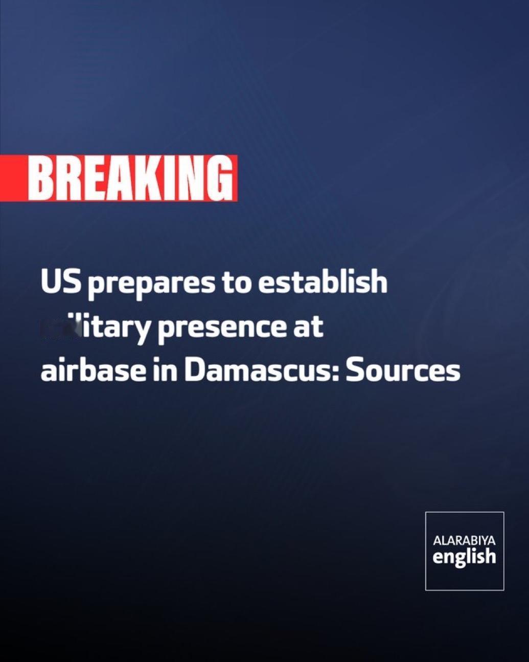 路透社报道,美国计划在叙利亚首都大马士革的一个空军基地驻扎军队,以协助促成华盛顿正在斡旋的叙利亚和以色列之间的安全协议。 为未来美国特遣队指定的基地位于与叙利亚南部接壤的边境地区,根据以色列和叙利亚之间的互不侵犯条约,该地区将被划为非军事区。