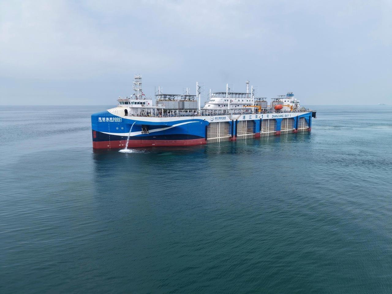 全球首个深海智能养殖平台“湛江湾一号”于周三停靠在中国广东省湛江市的码头。这艘由中国自主研发的船舶长154米,宽44米,配备浮式动态定位系统,可实现自主导航以避开台风,养殖水体容量达8万立方米,相当于32个标准游泳池。
