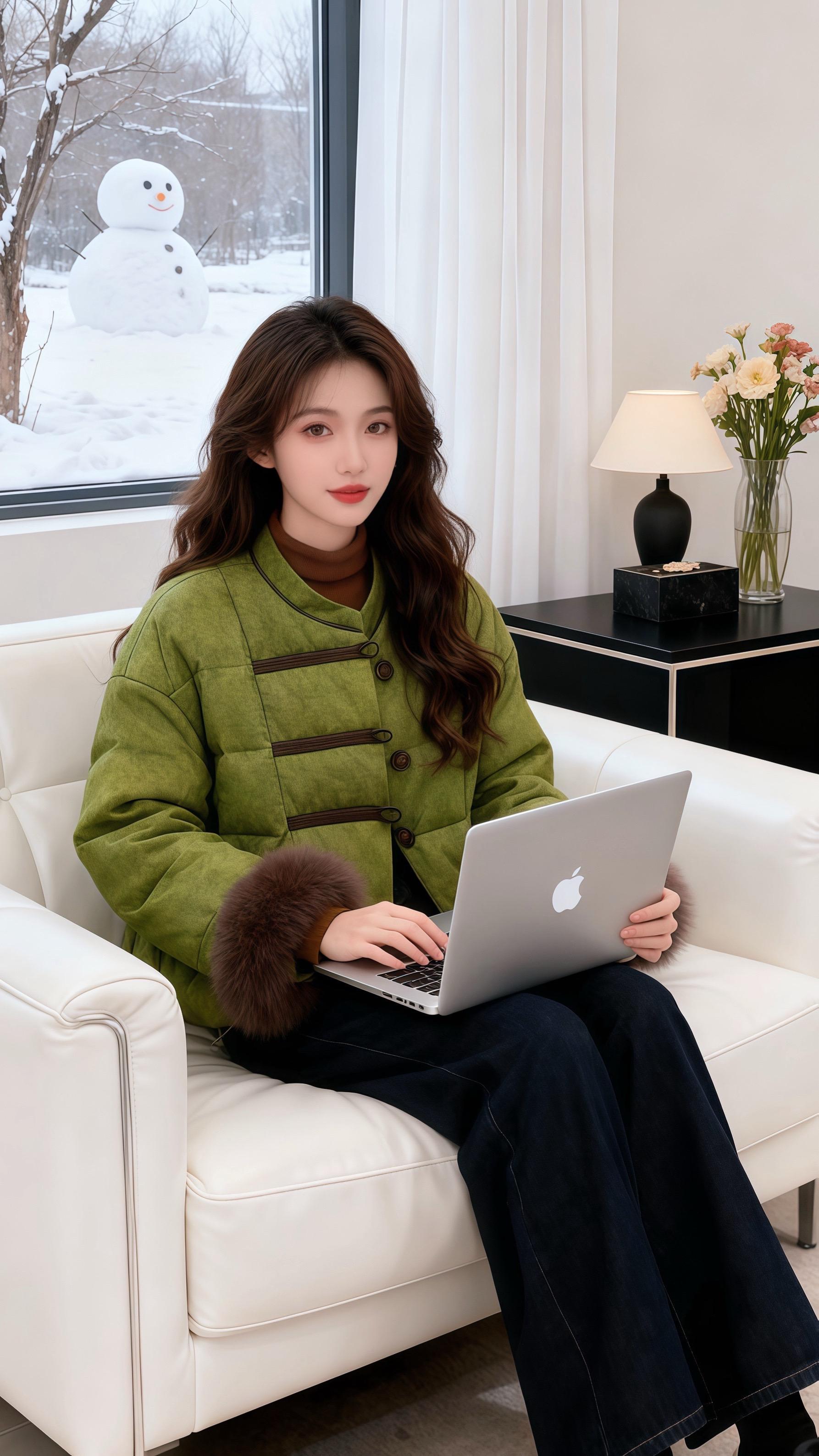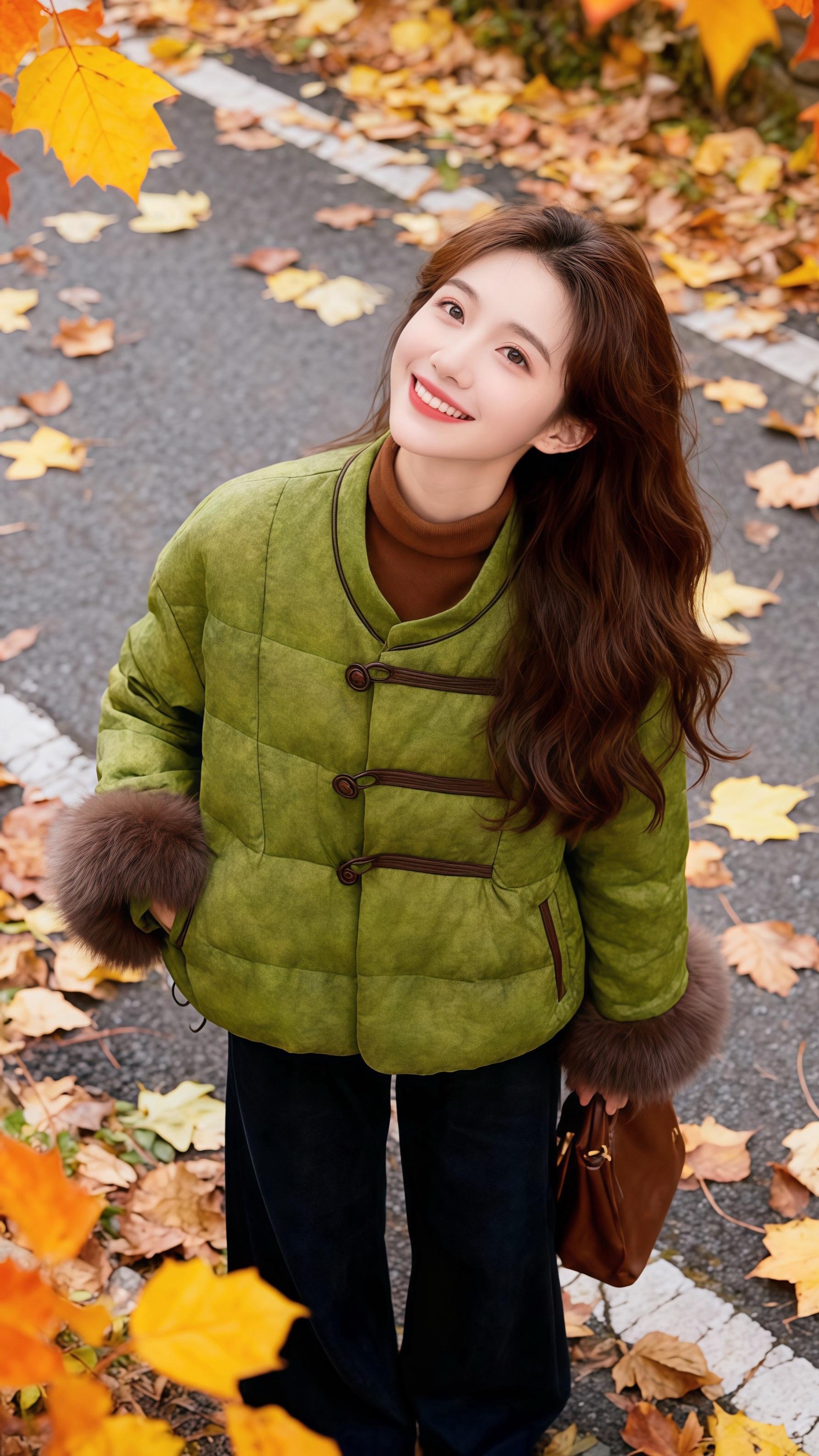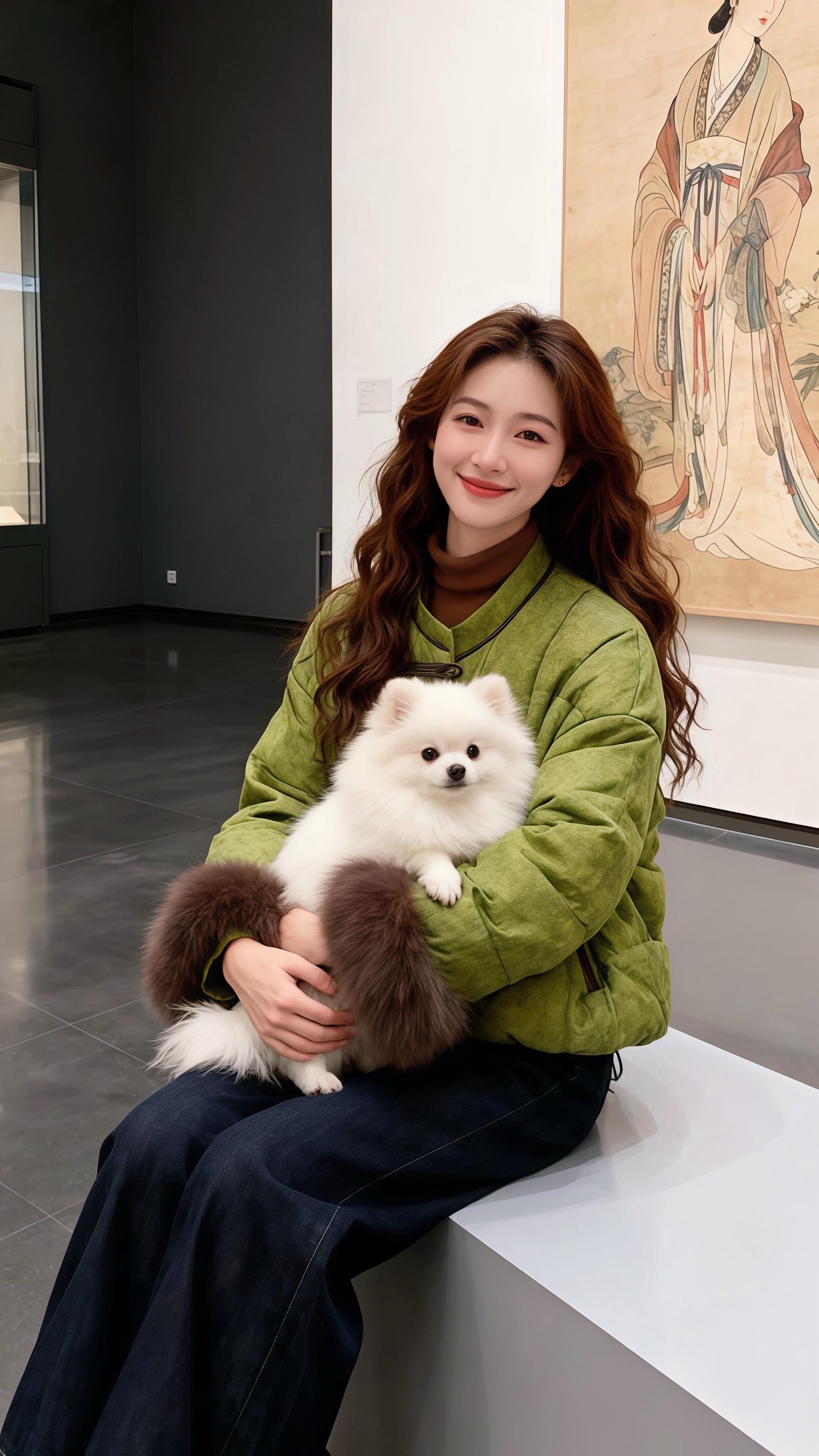 《美术馆里的“同款邂逅”》深秋的美术馆里,林晚穿了件苔绿盘扣棉服,毛领裹着手腕暖融融的。转角撞见一幅油画——画里的女孩竟穿着一模一样的外套,连袖口的绒毛弧度都分毫不差。