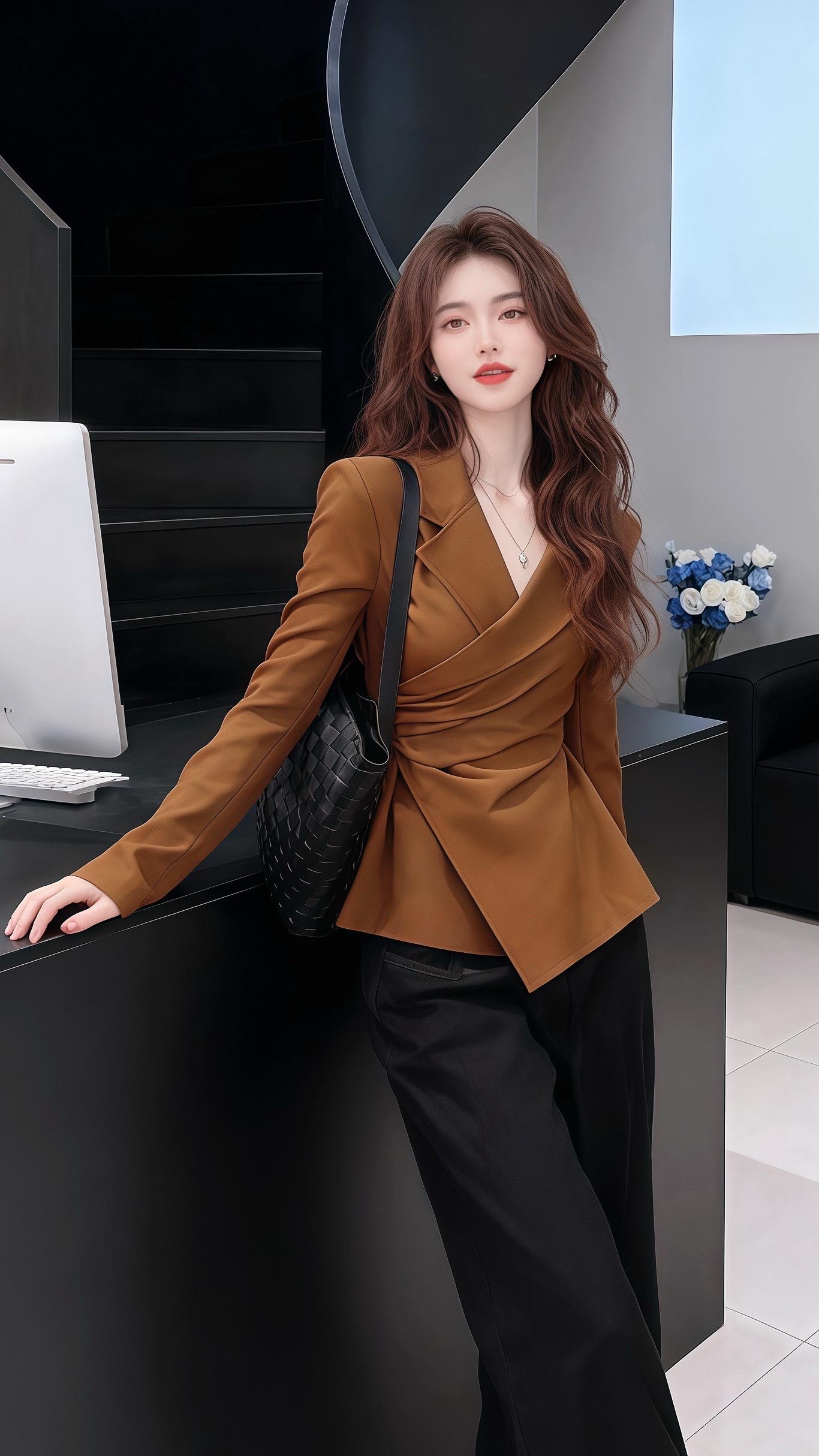 街头的职场穿搭模板!浅米色西装搭棕色西裤,配同色系高跟,简约干练又显气质,这样穿