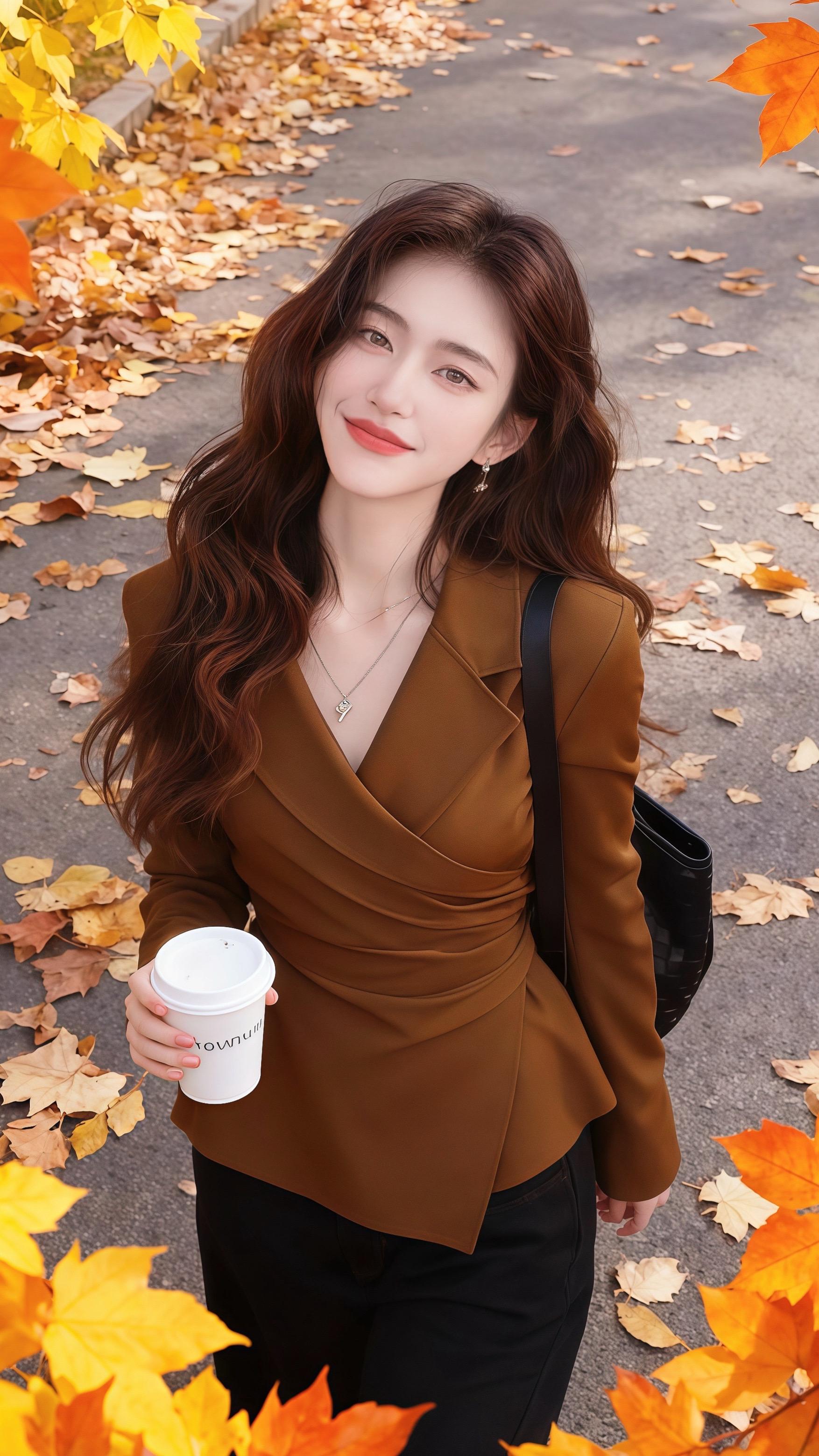焦糖棕风衣裙:秋雪都为她慢了半拍。深秋的梧桐叶刚落满街,林晚推开橱窗门...