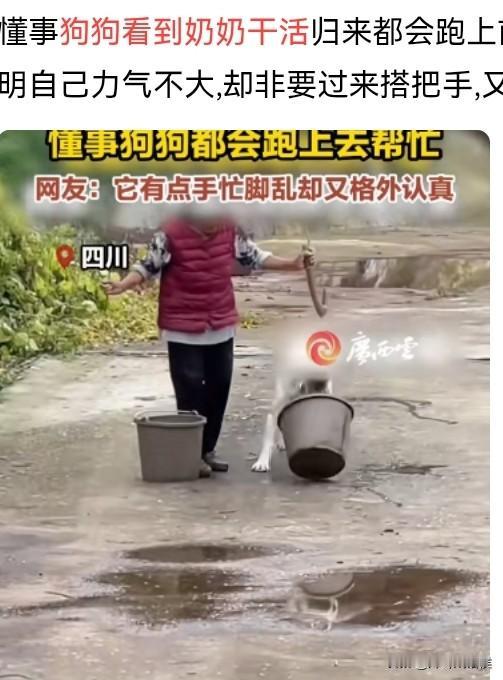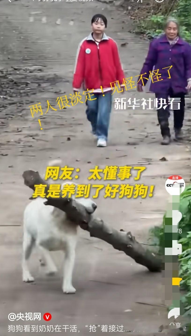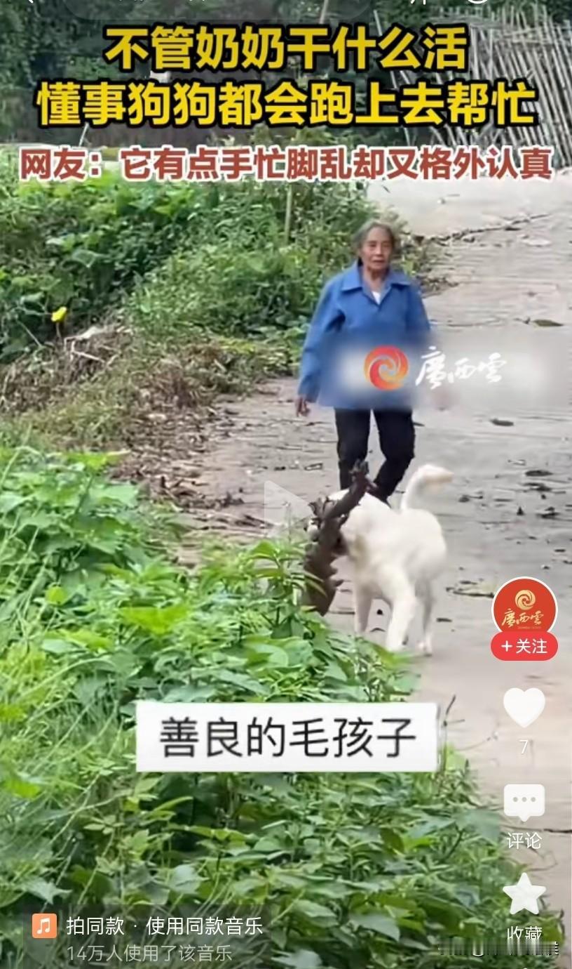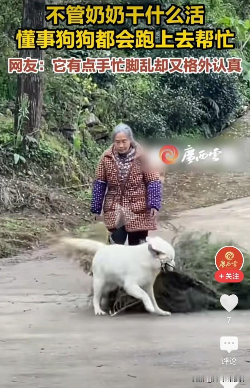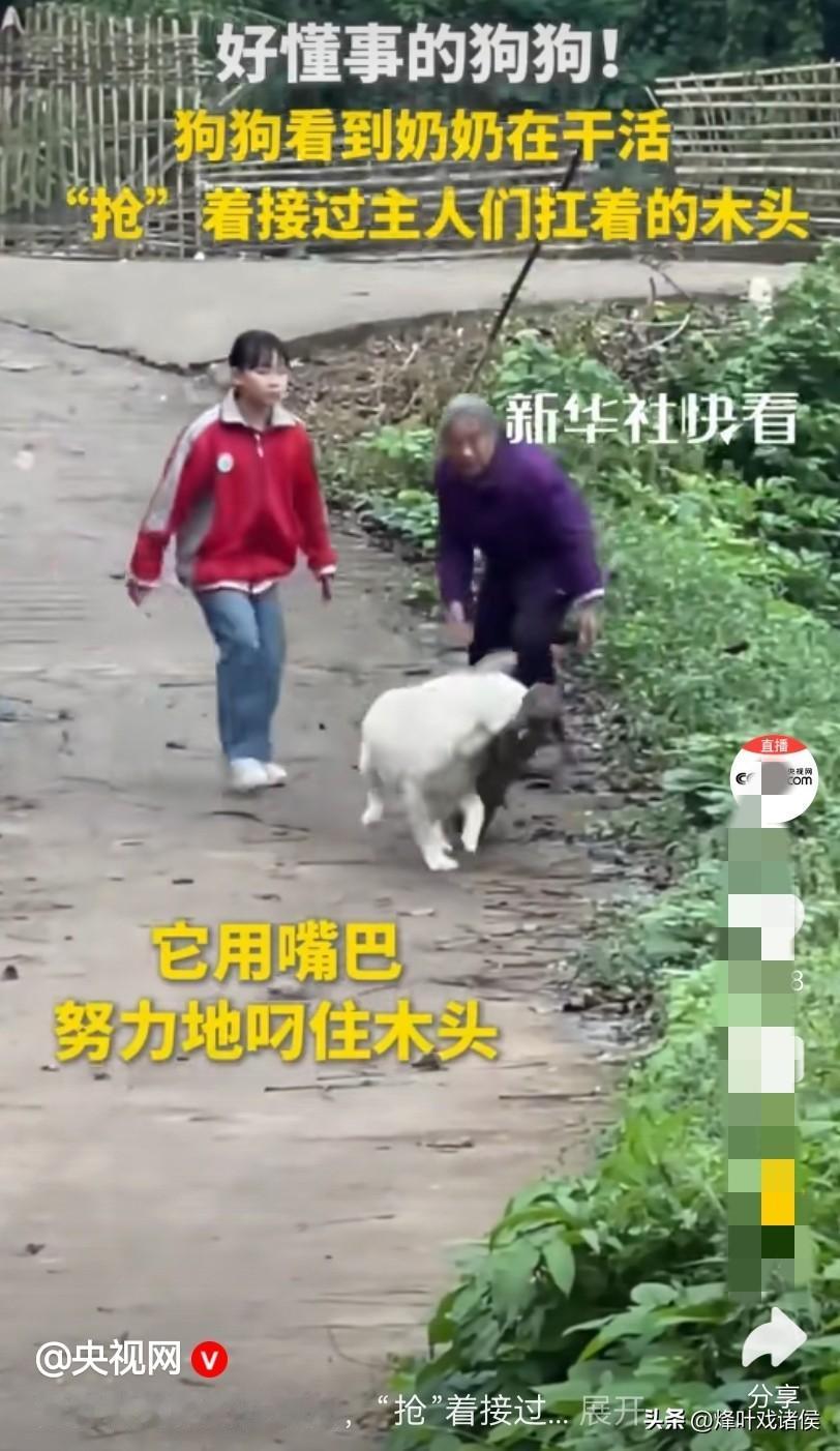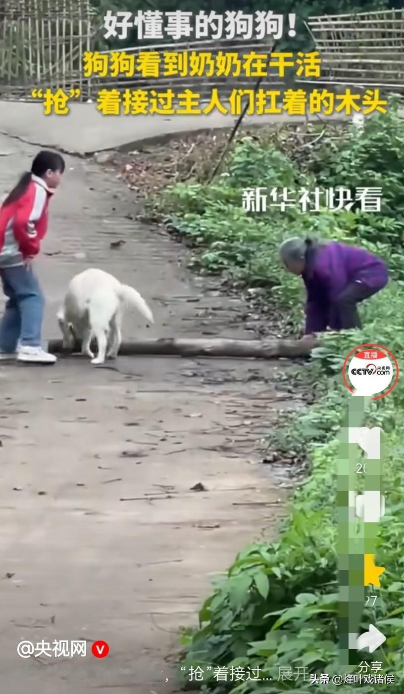 好一只中华田园犬,你居然被新华社转发了。 一个女孩和一个老奶奶正扛着一截木头,看起来份量不轻,这时从拍摄的地方冲出来一只白狗,一边向前一边摇着尾巴,像是在迎接主人,接下来意想不到的画面出现了。 这只狗一步就蹦向了小女孩那边的木头,由于狗子的冲劲,小女孩和老人顺势就把木头给放了下来。 本以为是狗子是来捣乱的,没想到它却是来帮忙干活的。 狗二话不说,用嘴和牙齿轻车熟路地叼起了那根木棍,接着就往前走去,而面对这样的画面,视频里的两人并不诧异,似乎早就知道结果了。 因为好奇,再去翻看以前的视频,发现这只狗可不是只会帮忙搬运木头,它还会帮忙拉袋子,帮忙提水桶,甚至还帮奶奶拉刚从山上砍回来的树枝,如此看来真是一个好帮手。 相信每一位网友看到这样的画面,都会萌生也想养一只这样的狗的想法。 只是不知道这狗狗帮奶奶干活,是天生有觉悟,还是后天培养出来的呢? 大家怎么看这只白色的中华田园犬呢?