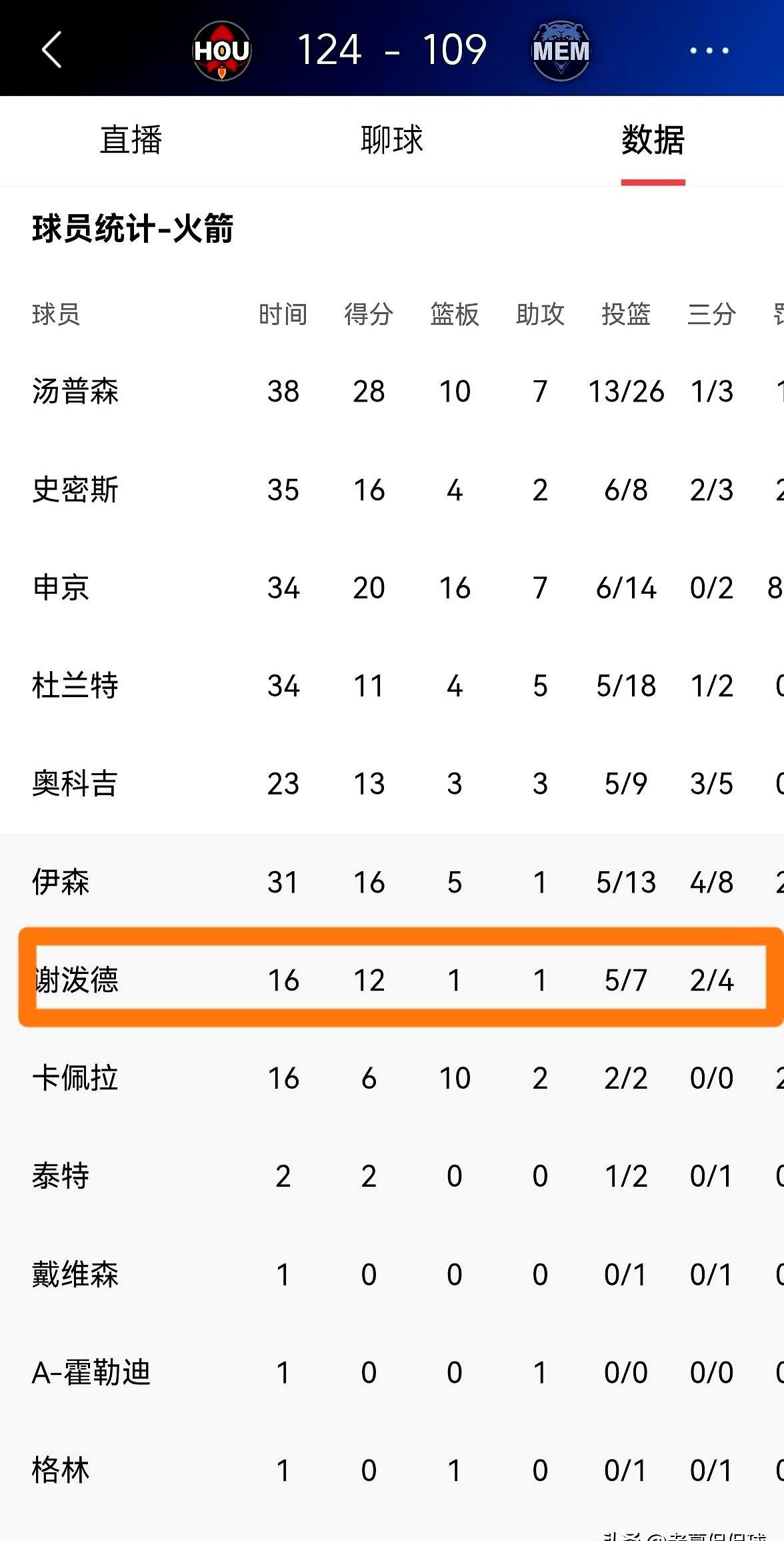 火箭今天在孟菲斯打出124比109的畅快比分,真正点燃话题的不是大比分胜利,而是