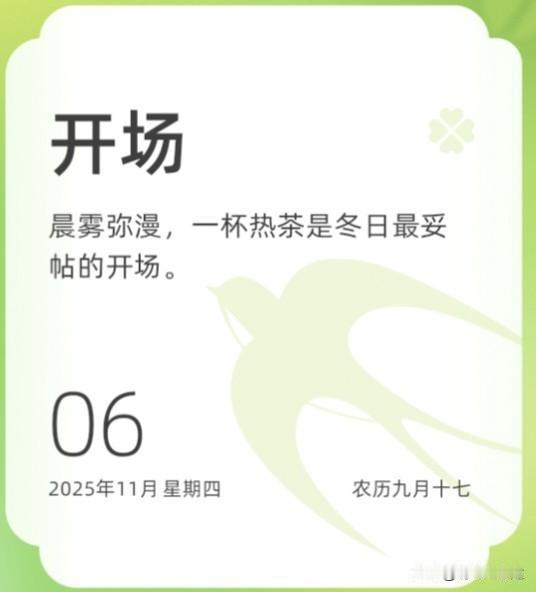 【晨雾弥漫,一杯热茶是冬日最妥帖的开场】 初冬已送凉,心头有热浪! 我终于也在这内心的革命里,寻得了自己的位置。我成了一名学徒的登山者。因为我终于深刻地明了:真正的强大,从来不是没有困境,而是在漫天的风沙与沉重的山影里,依然能保有一份行动的勇气,与一份清醒的头脑。 自己,才是一座最稳固、最不可撼动的靠山。