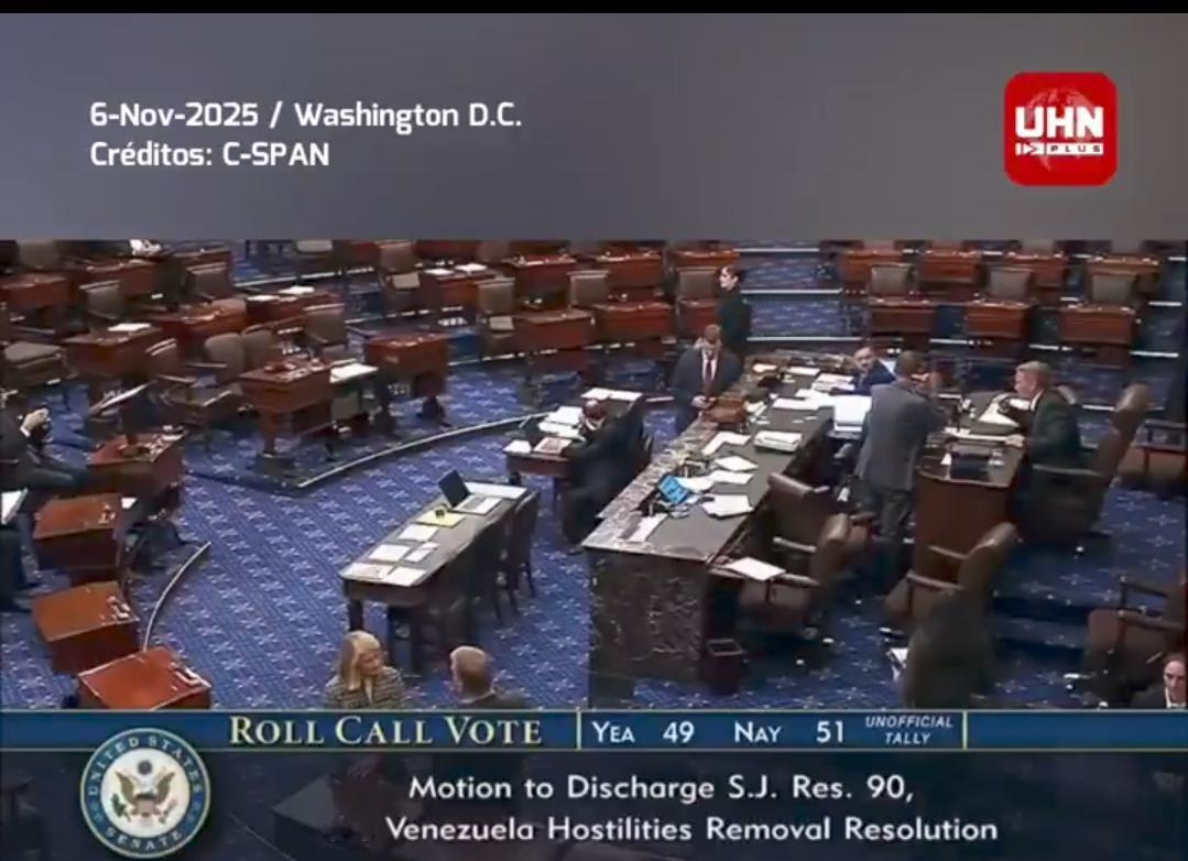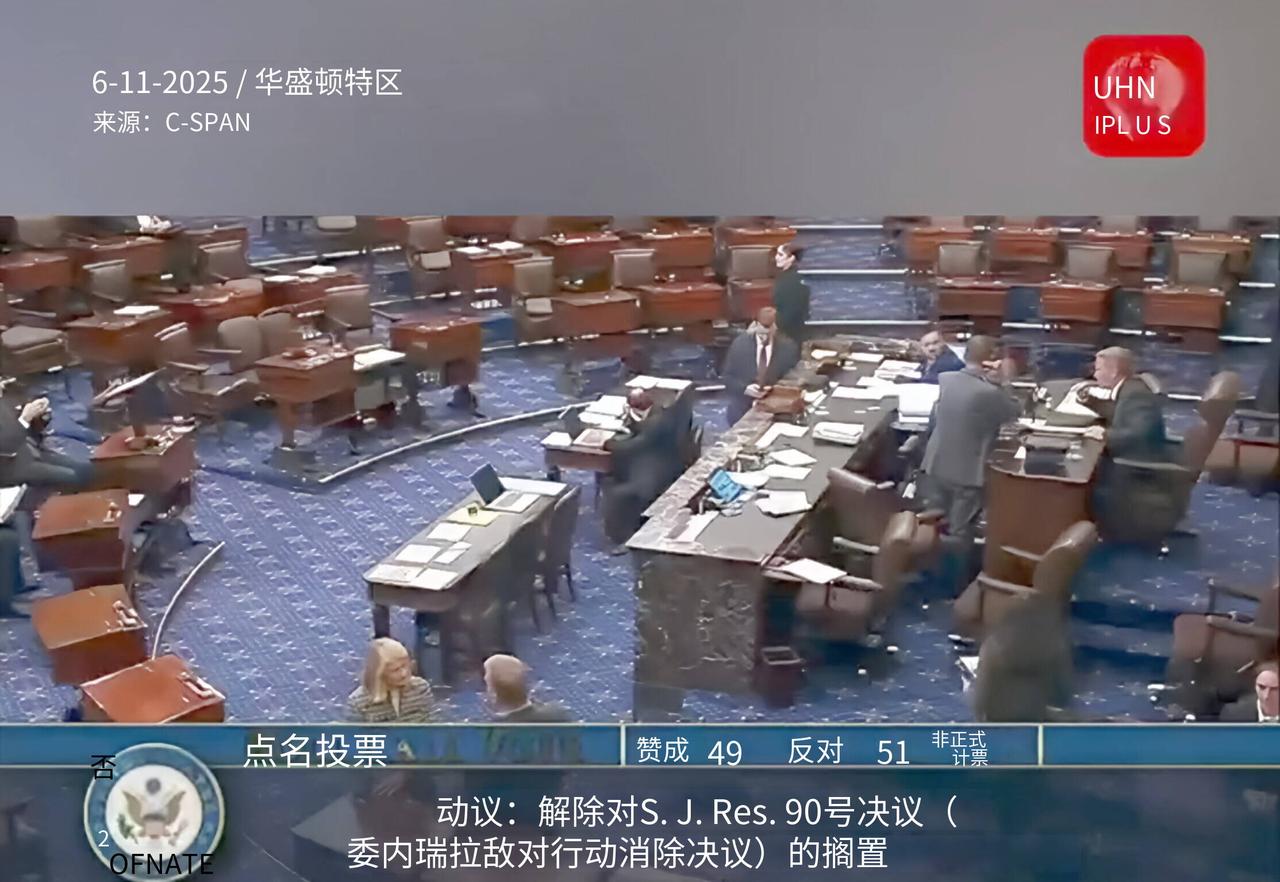 突发新闻——美国参议院以49票赞成、51票反对的结果,否决了民主党人试图阻止特朗普对委内瑞拉尼古拉斯·马杜罗政权采取军事攻势的提案。仅有两名共和党人投了反对票:兰德·保罗和莉萨·穆尔科斯基。