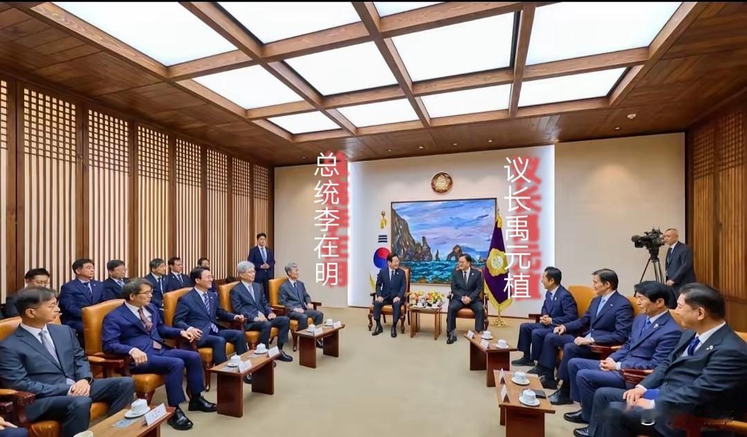 在韩国,唯有在此刻总统与议长才能融洽相处,有这么和谐的画面,因为“府会”皆由共同民主党掌控,李在明和禹元植同出一个党派即共同民主党!