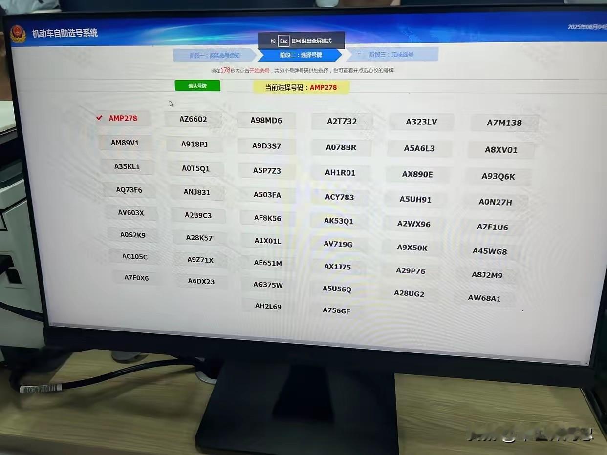 倒霉透了!车管所选车牌号码50选一。都说自动摇号码如果运气好的话有可能会出极品靓号,可是当这些号码弹出来的时候我都惊呆了!这都什么鬼号码?不仅没有豹子号,而且三连的号码也都没有,关键双连号也少的可怜,真是给我气炸了。最后干脆摆烂算了,选我都懒得选,就要了第一个号码AMP278,反正选哪一组号码都是验证码[泣不成声]