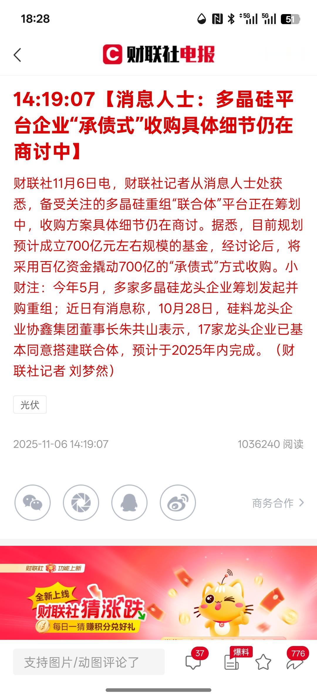 光伏反内卷重大进展:硅料行业酝酿整体重组为一家平台公司,最近整个行业板块都在大幅上涨,而且国内也在大批量的装机风电光伏,全球因为AI人工智能的发展严重缺电,现在很多国家开始为电力而发愁,而中国却在大力推动新型能源的发展,以解决电力需求的问题。那么,风电,光伏将成为未来A人工智能I能源主要供给!如果你在AI人工智能发展,因缺少电力,它就是一堆废铁,没办法运转!现在国内也在反内卷,大力发展风电光伏,以解决能源短缺问题!