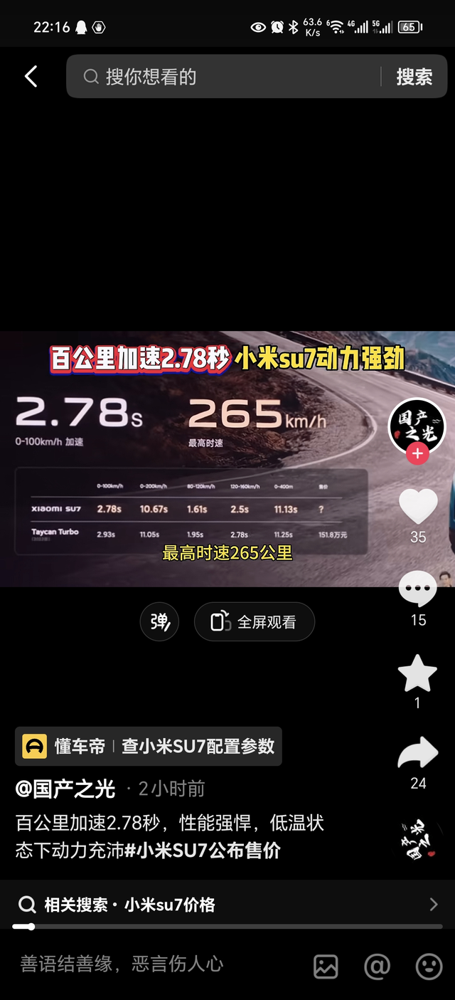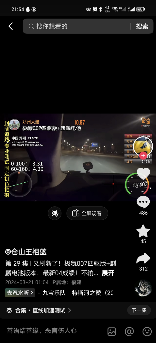 小米官标的中后段加速有点拉 小米官标的0到400米加速11.13秒,极氪007普通四驱100度电池版0到400米加速实测10.87秒,功夫黄只会更快,所以小米酥7是为了零百超过007放弃后段加速特意把前段调快了吗?