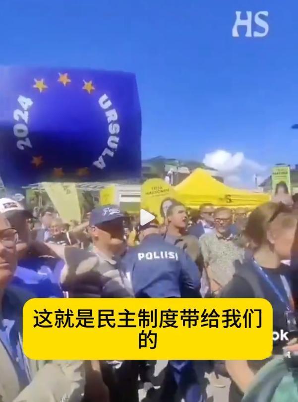 冯德莱恩刚说完“欧盟有抗议自由”,台下抗议者秒被抓!这打脸名场面太讽刺了   这